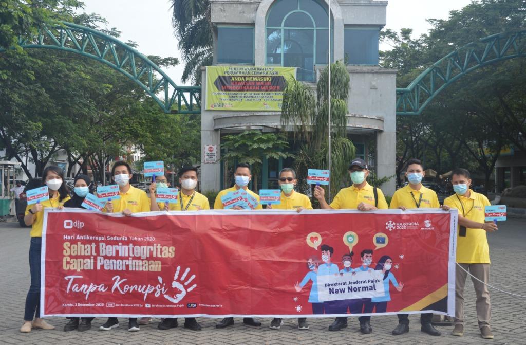 Kantor Pelayanan Pajak (KPP) Pratama Medan Belawan turut berpartisipasi memperingati Hari Anti Korupsi Sedunia (Hakordia) dengan turun ke jalan mengadakan aksi simpatik di Medan (Selasa, 8/12)
