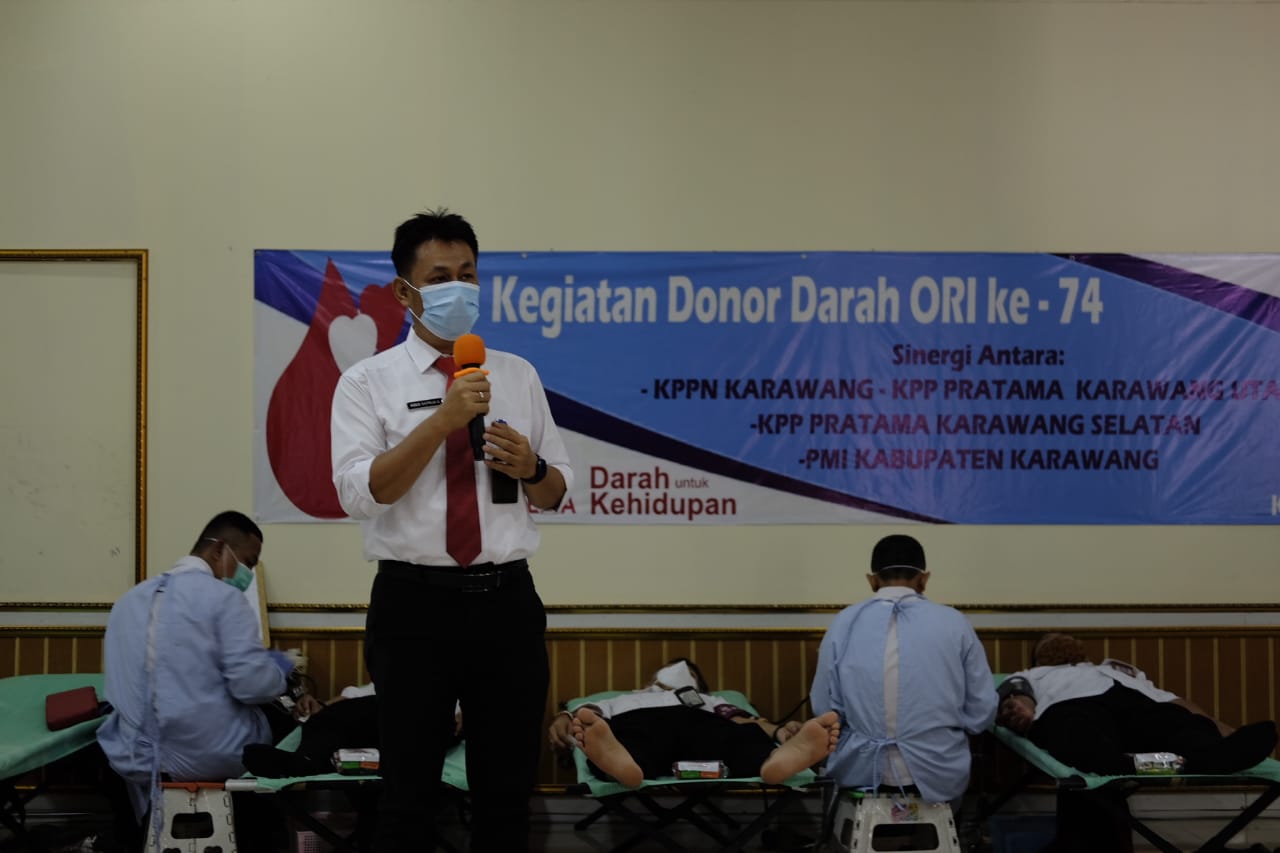 Kantor Pelayanan Pajak (KPP) Pratama Karawang Selatan, KPP Pratama Karawang Utara, dan KPPN Karawang bekerja sama dengan Palang Merah Indonesia melaksanakan kegiatan Donor Darah di Aula KPPN Karawang (Senin, 19/10). Sebanyak 100 pegawai mengikuti donor darah yang merupakan rangkaian peringatan Hari Oeang Republik Indonesia (HORI) yang ke-74.
