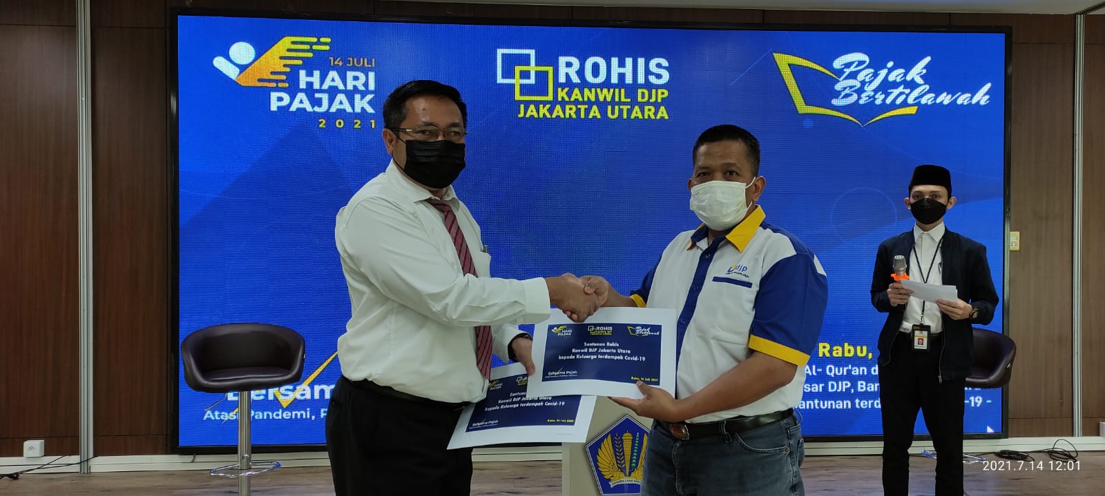 Turut memeriahkan Hari Pajak 2021, Rohis Kanwil DJP Jakarta Utara menggelar Pajak Bertilawah dan memberikan santunan kepada keluarga terdampak Covid-19 di Jakarta (Rabu, 14/7).