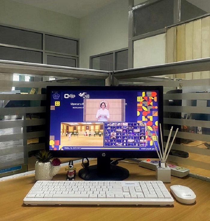 Seluruh pegawai Kantor Pelayanan Pajak (KPP) Pratama Bontang mengikuti upacara peringatan Hari Pajak oleh Direktorat Jenderal Pajak secara daring melalui kanal Youtube Ditjen Pajak RI (Rabu, 14/7). Bertajuk “Bersama Pajak Atasi Pandemi, Pulihkan Ekonomi”, upacara daring ini dimulai pada pukul 09.00 WITA.