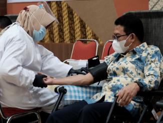 Calon pendonor telah diuji rapid test dan dinyatakan non reaktif. Sebelum memasuki gedung, mereka diminta untuk mencuci tangan menggunakan hand sanitizer terlebih dahulu, melakukan pengecekan suhu tubuh, dan dilanjutkan dengan pengecekan kesehatan.