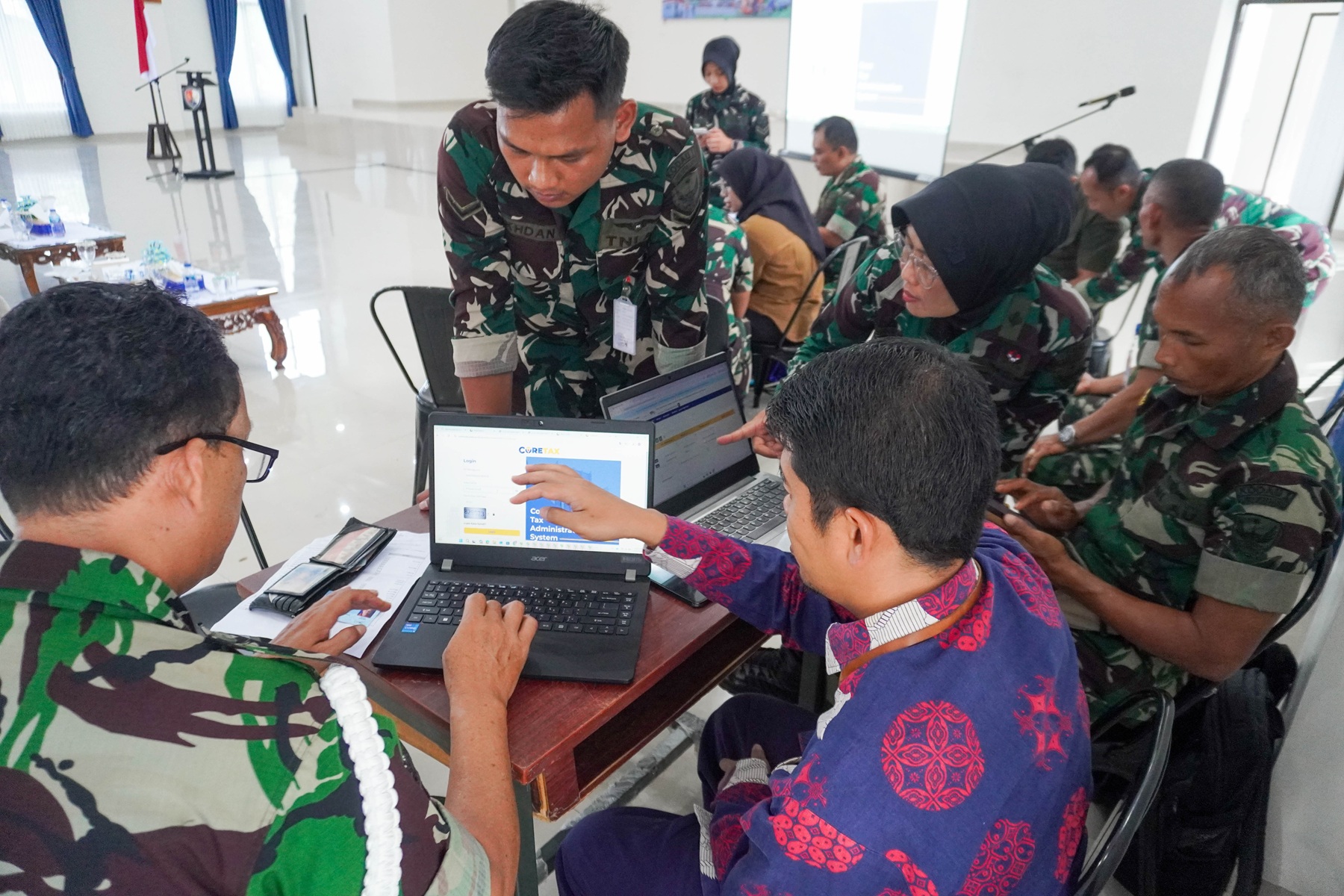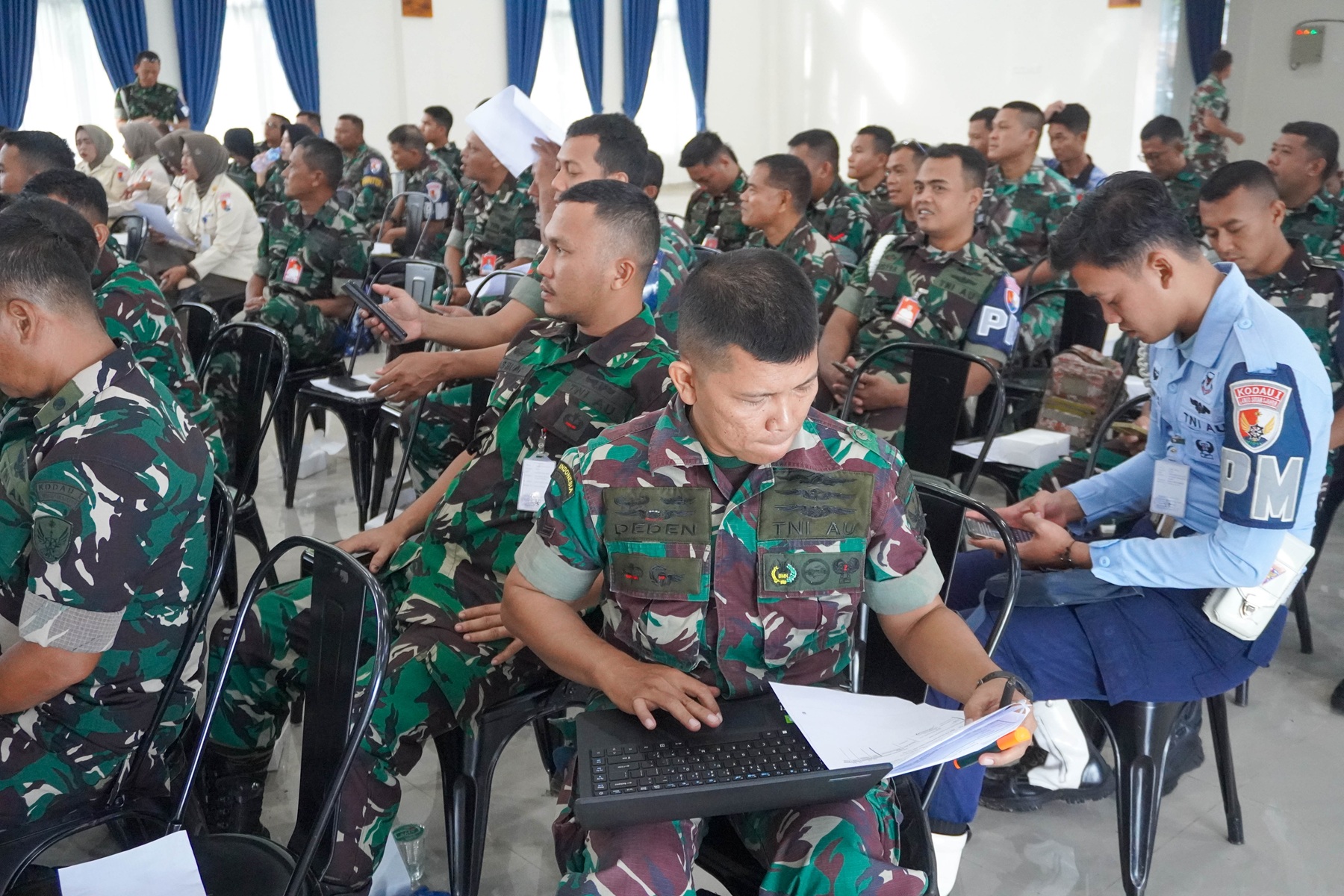 Ratusan prajurit berseragam biru dan aparatur sipil negara memenuhi Gedung Serba Guna Angkasa, Kota Padang (Kamis, 12/2). Lanud Sutan Sjahrir melaksanakan sosialisasi pengisian dan pelaporan Surat Pemberitahuan (SPT) Tahunan Pajak melalui Coretax DJP bekerja sama dengan Kantor Wilayah Direktorat Jenderal Pajak (Kanwil DJP) Sumatera Barat dan Jambi dan Kantor Pelayanan Pajak (KPP) Pratama Kota Padang.
