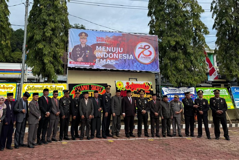 Kantor Pelayanan, Penyuluhan, dan Konsultasi Perpajakan (KP2KP) Enrekang mengikuti Acara Peringatan Hari Bhayangkara ke-78 yang bertempat di Lapangan Apel Markas Kepolisian Resor (Mapolres) Enrekang di Jalan Sultan Hasanuddin Nomor 40, Puserren, Kecamatan Enrekang, Kabupaten Enrekang (Senin, 1/7). Kegiatan ini dilakukan dalam rangka memenuhi undangan Polres Enrekang untuk turut memperingati Hari Bhayangkara ke-78 sekaligus mempertahankan sinergi yang telah lama terjalin antara KP2KP Enrekang dan Polres Enrekang.
