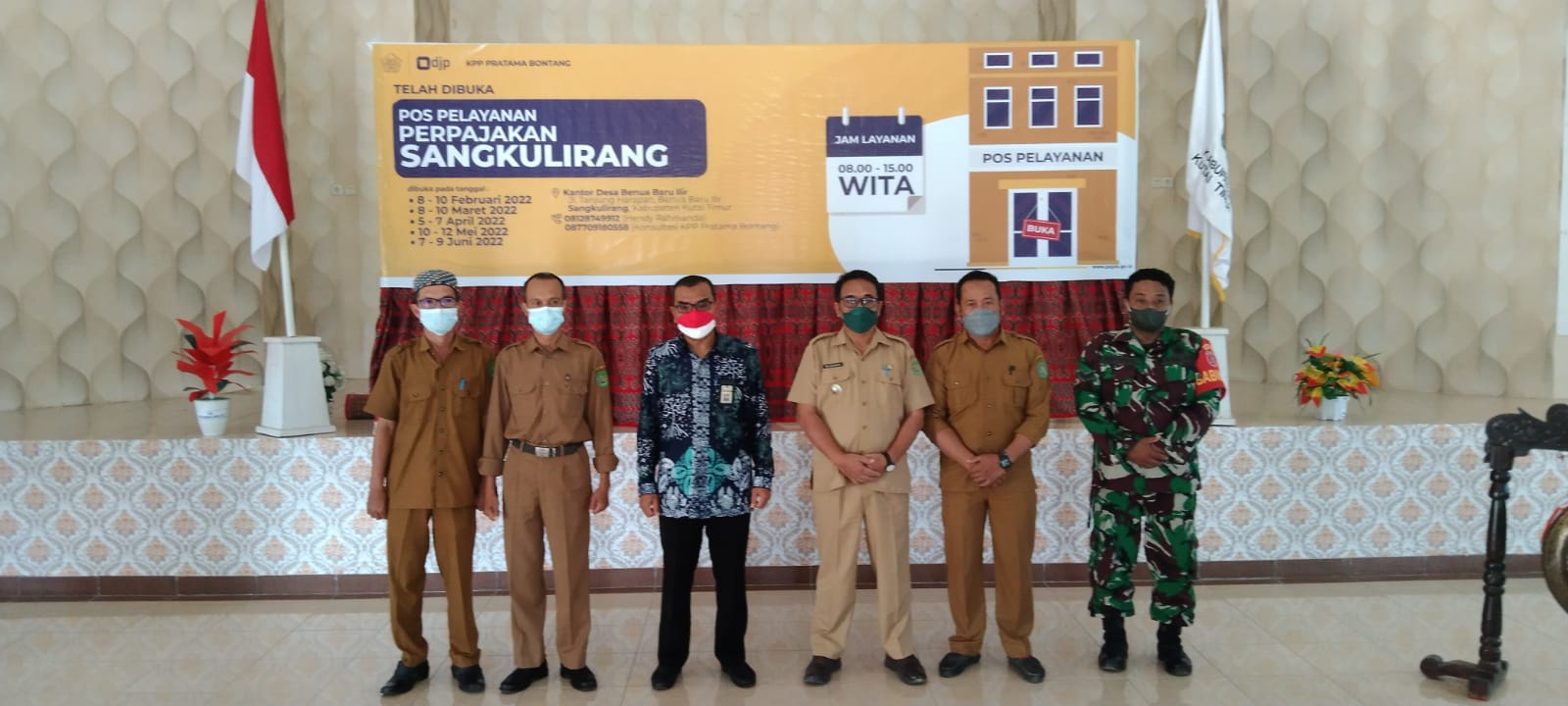Tim Kantor Pelayanan Pajak (KPP) Pratama Bontang dan Kantor Pelayanan Penyuluhan dan Konsultasi Perpajakan (KP2KP) Sangatta resmi membuka Pos Pelayanan Pajak Sangkulirang di Kab. Kutai Timur (Selasa, 8/2).