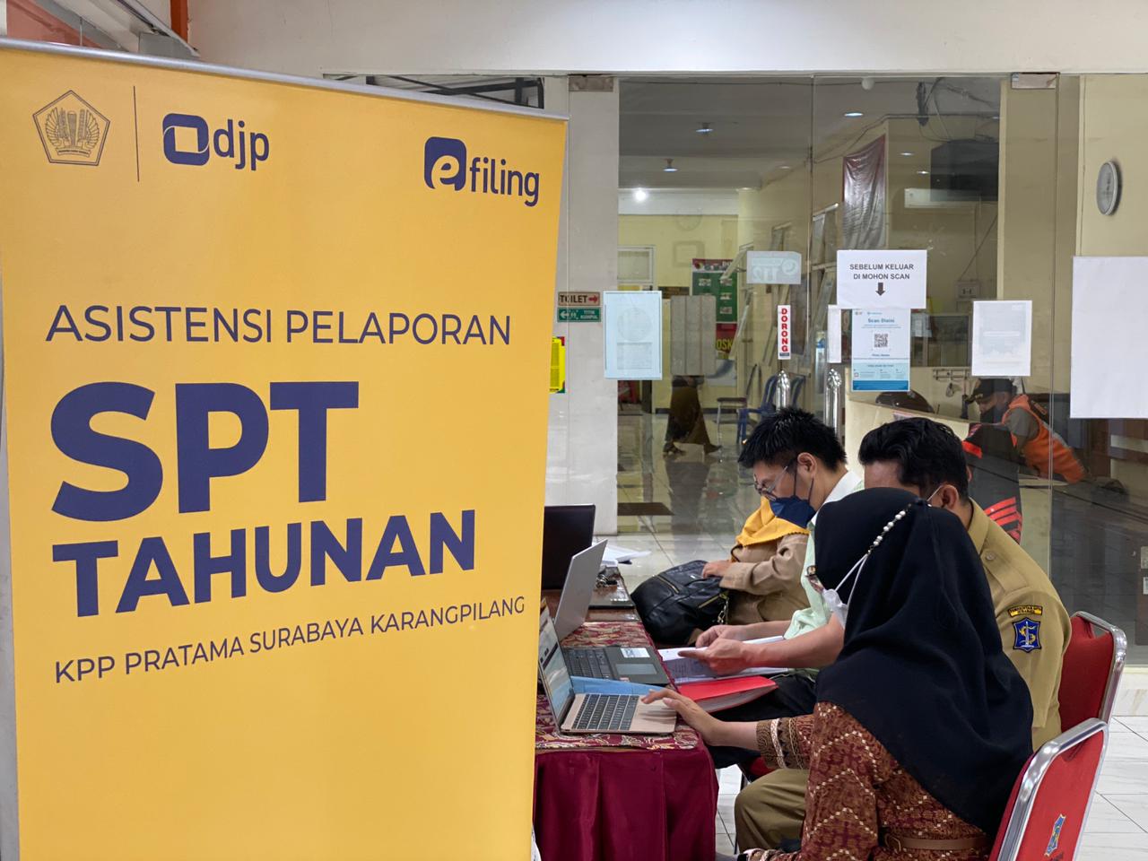 Kantor Pelayanan Pajak (KPP) Pratama Surabaya Karangpilang kembali menggelar asistensi pelaporan Surat Pemberitahuan (SPT) Tahunan bagi wajib pajak orang pribadi yang dilaksanakan di Kantor Kecamatan Dukuh Pakis (Selasa, 22/3). Kegiatan ini bertujuan untuk memudahkan wajib pajak yang berdomisili di sekitar Kantor Kecamatan Dukuh Pakis untuk melaporkan SPT Tahunan.