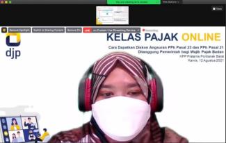 Kantor Pelayanan Pajak (KPP) Pratama Pontianak Barat mengadakan Kelas Pajak Daring mengenai perpanjangan insentif pajak melalui aplikasi Zoom Cloud Meetings dan siaran langsung YouTube di Kota Pontianak (Kamis, 12/8).