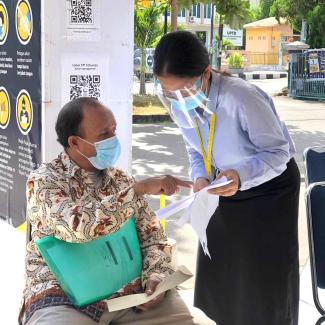 KPP Pratama Kupang mengandalkan petugas edukasi dalam melakukan asistensi kepada wajib pajak dalam pelaporan SPT Tahunan (Senin, 1/3). Kegiatan asistensi tersebut dilaksanakan setiap hari kerja pada pukul 08.00 sampai dengan pukul 16.00 WITA bertempat di halaman kantor. Petugas edukasi melakukan asistensi tata cara pelaporan SPT Tahunan melalui e-Filing kepada beberapa wajib pajak sekaligus dengan tetap menjaga jarak dan mengikuti protokol kesehatan.