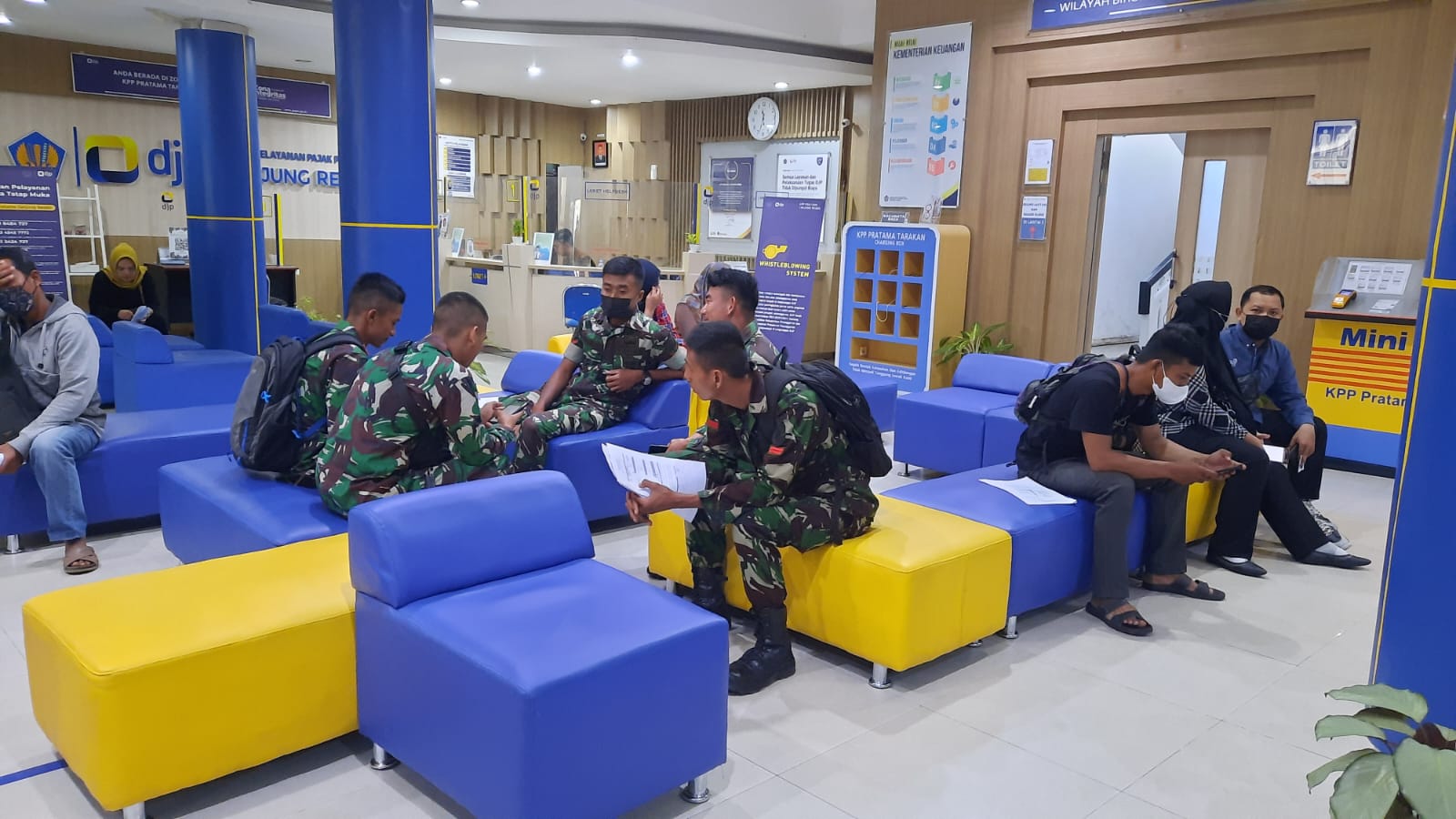 Kantor Pelayanan Pajak (KPP) Pratama Tarakan memberikan fasilitas asistensi bagi beberapa anggota TNI untuk mendapatkan pendampingan pelaporan Surat Pemberitahuan (SPT) Tahunan di KPP Pratama Tarakan, Kota Tarakan (Kamis, 9/2).