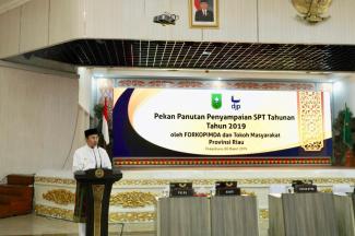 Setelah menyampaikan SPT Tahunan dalam sambutannya, Gubernur Riau menyampaikan bahwa pajak mempunyai peran yang sangat penting dalam penyediaan anggaran pembangunan baik dalam APBN dan APBD. Berbagai manfaat pajak sudah dinikmati oleh masyarakat secara langsung melalui pembangunan infrastruktur, penyediaan fasilitas pendidikan, kesehatan, dan lain sebagainya serta mengajak seluruh masyarakat wajib pajak di provinsi Riau untuk segera melaksanakan kewajiban perpajakannya.