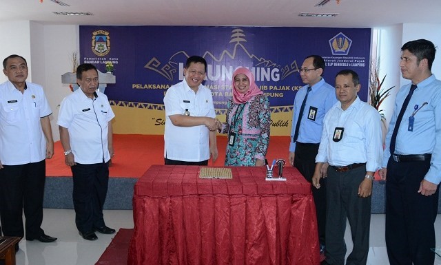 Plt. Walikota Bandar Lampung Muhammad Yusuf Kohar dan Kepala Kanwil DJP Bengkulu dan Lampung Erna Sulistyowati meluncurkan (launching) Pelaksanaan Konfirmasi Status Wajib Pajak (KSWP), bertempat di Gedung Pelayanan Publik Pemerintah Kota Bandar Lampung, (Rabu, 11/4/2018). Turut hadir Kepala KPP Pratama Tanjung Karang Abdul Gani, Kepala KPP Teluk Betung Faisal Fatahillah, Kepala KPP Pratama Kedaton Yurzal, dan para Pejabat di Lingkungan Pemerintah Kota Bandar Lampung.