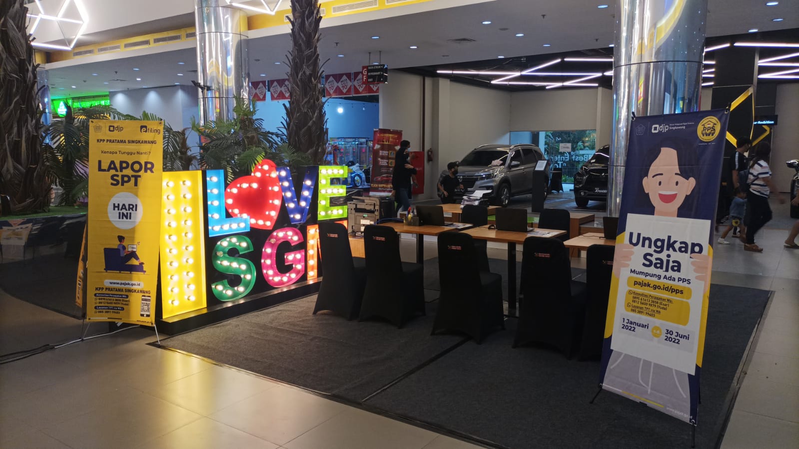 Di Pojok Pajak ini, wajib pajak dapat menerima layanan berupa pelaporan SPT Tahunan, Program Pengungkapan Sukarela (PPS), serta konsultasi perpajakan lainnya dari petugas KPP Pratama Singkawang. Pojok Pajak buka mulai tanggal 21 sampai dengan 31 Maret 2022 pukul 17.00 - 20.00 WIB pada hari Senin sampai Jumat, sedangkan pada hari Sabtu dan Minggu buka pukul 12.00 - 20.00 WIB.