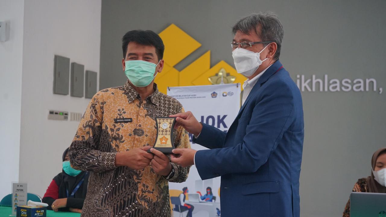 Kepala Kantor Wilayah DJP Aceh, Imanul Hakim bersama dengan Rektor Universitas Syiah Kuala (USK), Syamsul Rizal meresmikan Pojok Pajak Universitas Syiah Kuala di Lobby VIP Gedung AAC Dayan Dawood, Universitas Syiah Kuala, Banda Aceh (Selasa, 23/3). Kegiatan diawali dengan Kick Off Pengisian SPT Tahunan oleh Rektor USK didampingi oleh Kepala Kanwil DJP Aceh, kata sambutan oleh Rektor Unsyiah dan Kepala Kanwil DJP Aceh, serta diakhiri dengan sesi foto bersama.