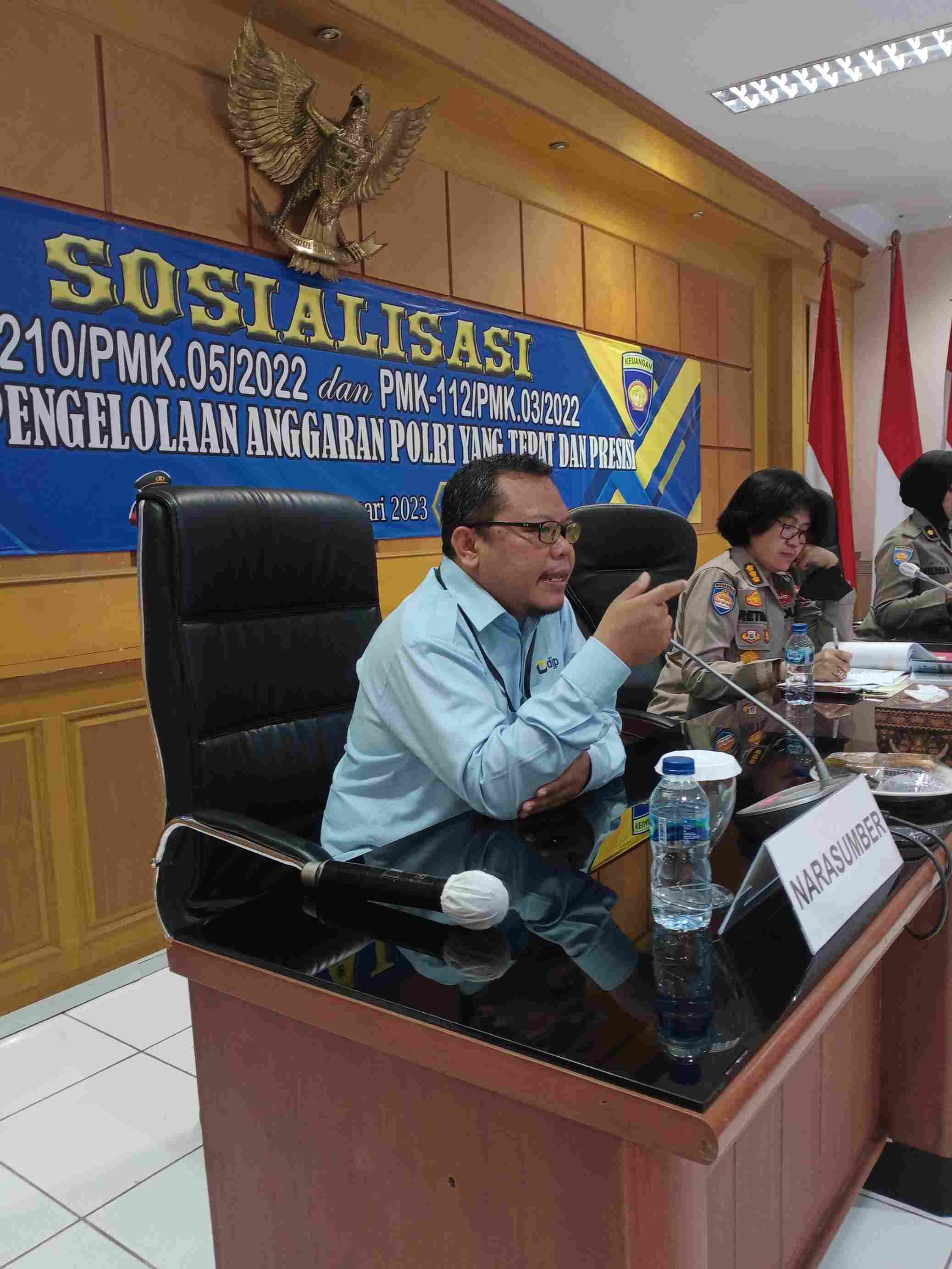 Bidang Keuangan Polda Banten mengundang Kantor Pelayanan Pajak (KPP) Pratama Serang Barat untuk menjadi narasumber pada kegiatan Sosialisasi PMK-210/PMK.05/2022 dan PMK -112/PMK.03/2022 yang diadakan di Polda Banten, Kota Serang (Rabu, 22/2).
