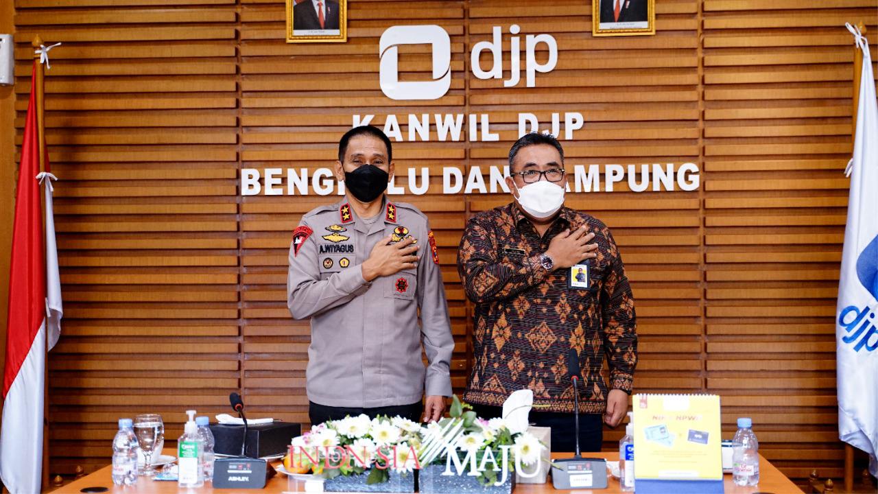 Kerja sama antara Kepolisian Negara Republik Indonesia dengan Kementerian Keuangan Republik Indonesia khususnya Direktorat Jenderal Pajak, sudah lama terjalin dalam berbagai bidang. Seperti dalam hal peningkatan kerja sama pelaksanaan tugas dan fungsi yang meliputi pertukaran data dan atau informasi serta intelijen, bantuan pengamanan, penegakan hukum, peningkatan kapasitas SDM, pemanfaatan sarana prasarana dan kegiatan lain. Sinergi antara Kanwil DJP Bengkulu dan Lampung dan Polda Lampung menjadi momen yang baik untuk menjalin kerja sama yang lebih erat dalam hal mengamankan penerimaan negara dari sektor perpajakan.