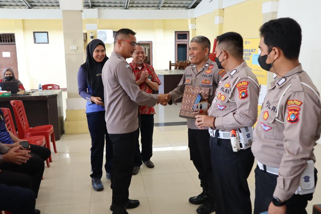 Kepala Polisi Resort (Polres) Belitung Timur memberikan cokelat untuk sepuluh orang anggota Polri yang tercepat dalam melakukan pemadanan NIK jadi NPWP dan pelaporan SPT Tahunan melalui e-Filing di Aula Polres Belitung Timur, Belitung Timur (Jumat, 20/1).