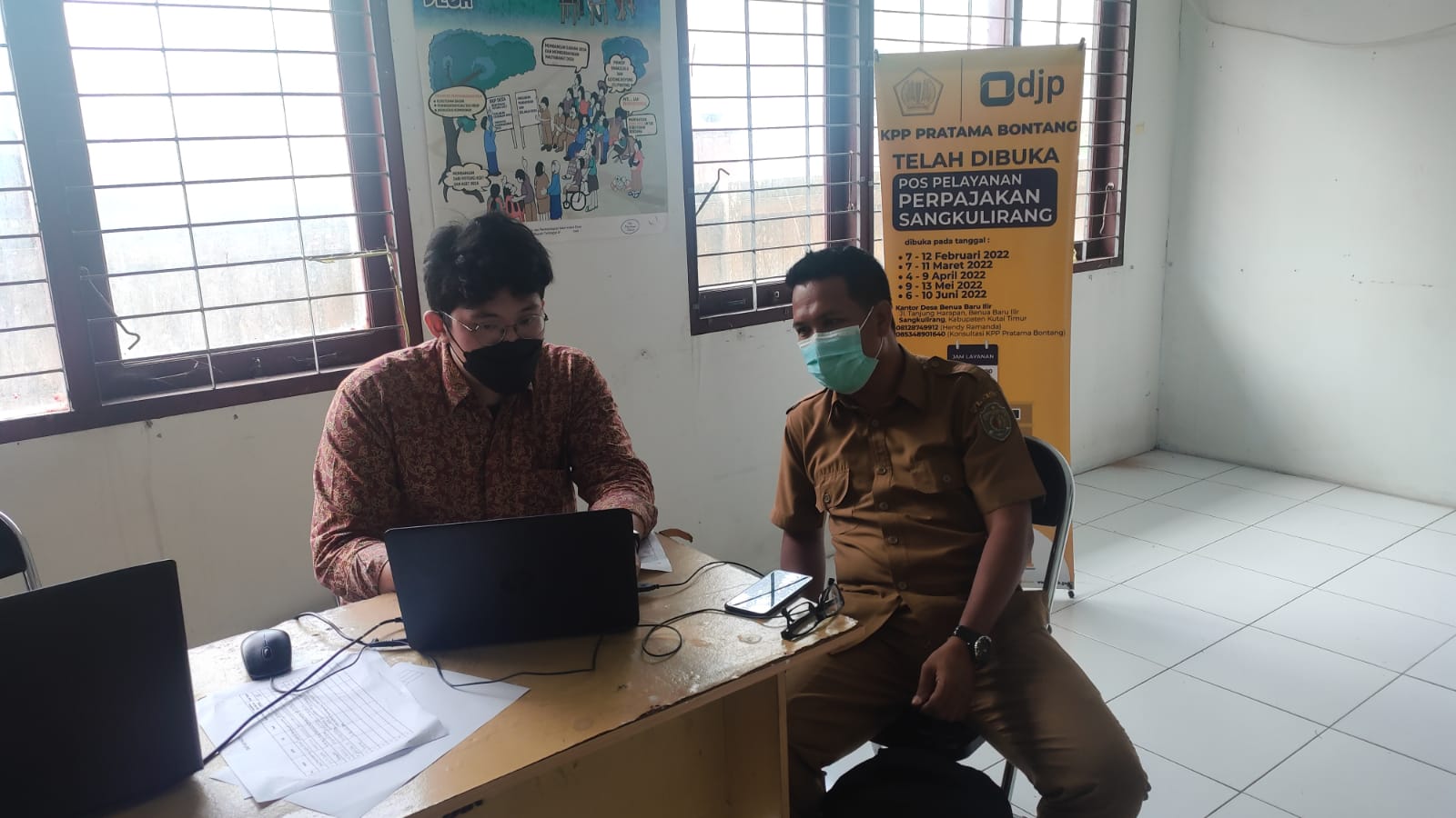 Kantor Pelayanan Penyuluhan dan Konsultasi Perpajakan (KP2KP) Sangatta bersama Kantor Pelayanan Pajak (KPP) Pratama Bontang kembali membuka Layanan Diluar Kantor (LDK) yaitu Pos Pelayanan Pajak di Kecamatan Sangkulirang, tepatnya di kantor Desa Benua Baru Ilir, Sangkulirang, Kabupaten Kutai Timur (Kamis, 07/04).