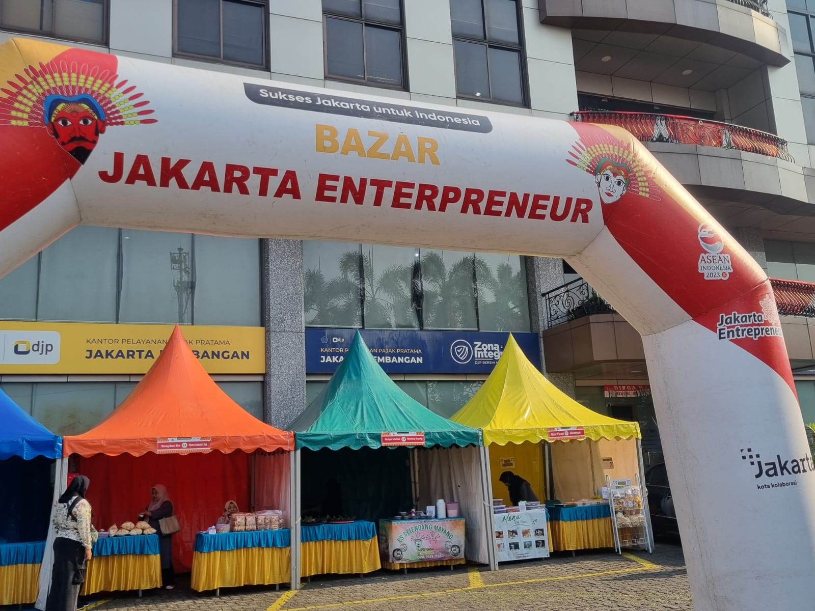Kantor Pelayanan Pajak (KPP) Pratama Jakarta Kembangan menggelar bazar Usaha Mikro, Kecil, dan Menengah (UMKM) selama 2 hari di halaman KPP Pratama Jakarta Kembangan, Kembangan, Jakarta Barat (Kamis, 15/8). Berkolaborasi dengan Suku Dinas Perindustrian, Perdagangan, Koperasi, Usaha Kecil, dan Menengah (PPKUKM) Jakarta Barat, bazar ini merupakan bentuk implementasi pelaksanaan Business Development Services (BDS) yang termasuk dalam strategi pembinaan kepada wajib pajak UMKM.