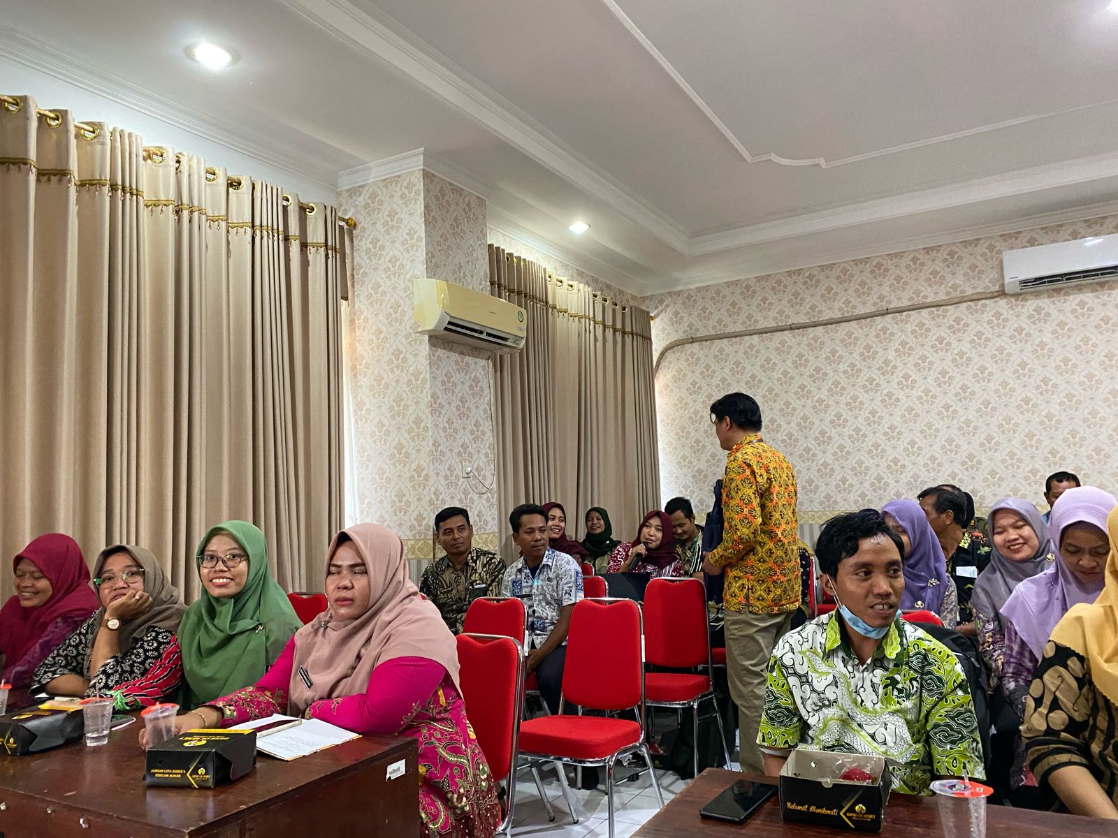 Pada sesi materi, Tim Penyuluh dari KPP Pratama Blora, Ehud Rengkuh Riyanta dan Sugeng menyampaikan materi tentang pemotongan PPh Pasal 21 menggunakan TER yang mulai diberlakukan sejak 1 Januari 2024 sesuai Peraturan Pemerintah Nomor PP 58 Tahun 2023 dan Peraturan Menteri Keuangan Nomor PMK 168 Tahun 2023. Pemaparan materi berlangsung lancar, banyak peserta yang langsung mengangkat tangan untuk bertanya tanpa menunggu sesi diskusi, termasuk Kepala BPPKAD yang menanyakan tentang perlakuan pajak atas Tambahan Penghasilan Pegawai (TPP) yang diterima oleh PNS di wilayah Kabupaten Grobogan.