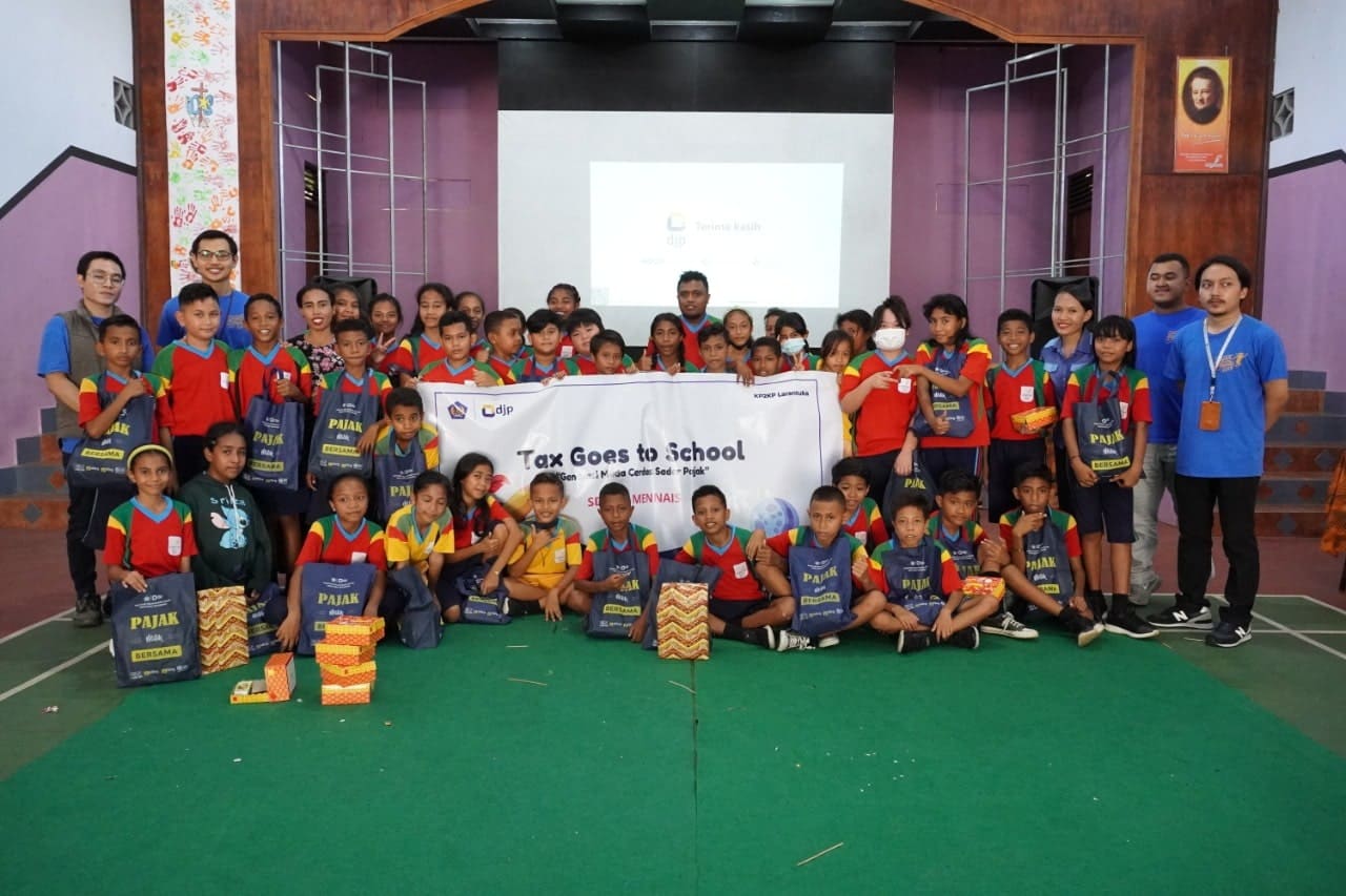 Kantor Pelayanan, Penyuluhan, dan Konsultasi Perpajakan (KP2KP) Larantuka menggelar kegiatan Tax Goes to School (TGTS) di SDK La Mennais, Kecamatan Larantuka, Kabupaten Flores Timur (Sabtu, 15/10). Acara yang diikuti sebanyak 39 siswa-siswi kelas 6 SD ini dilaksanakan secara tatap muka di gedung aula SDK La Mennais.