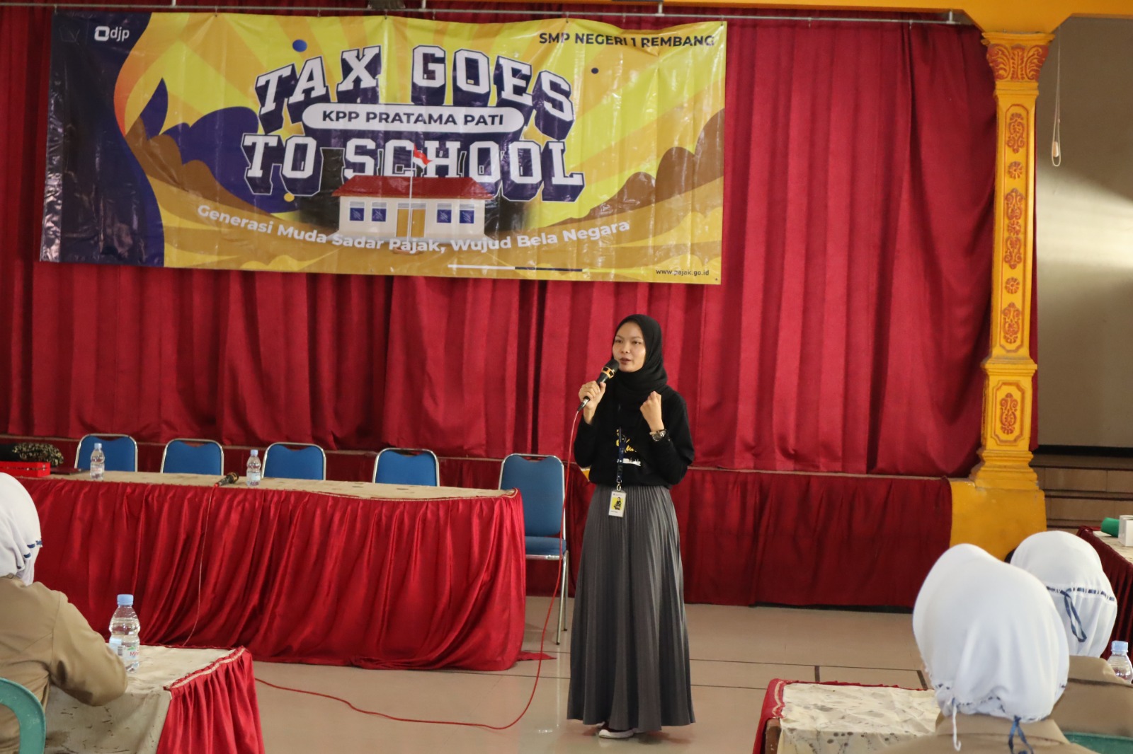 Kantor Pelayanan, Penyuluhan, dan Konsultasi Perpajakan (KP2KP) Rembang kembali menyelenggarakan kegiatan Tax Goes To School (TGTS) tahun 2025 dengan tema Lampaui Batas, Bangkit untuk Indonesia Emas. Kegiatan ini dilaksanakan secara tatap muka di Aula Sekolah Menengah Pertama (SMP) Negeri 1 Rembang, Kabupaten Rembang (Senin, 19/5). Sebanyak 30 siswa SMP Negeri 1 Rembang hadir mengikuti kegiatan tersebut.