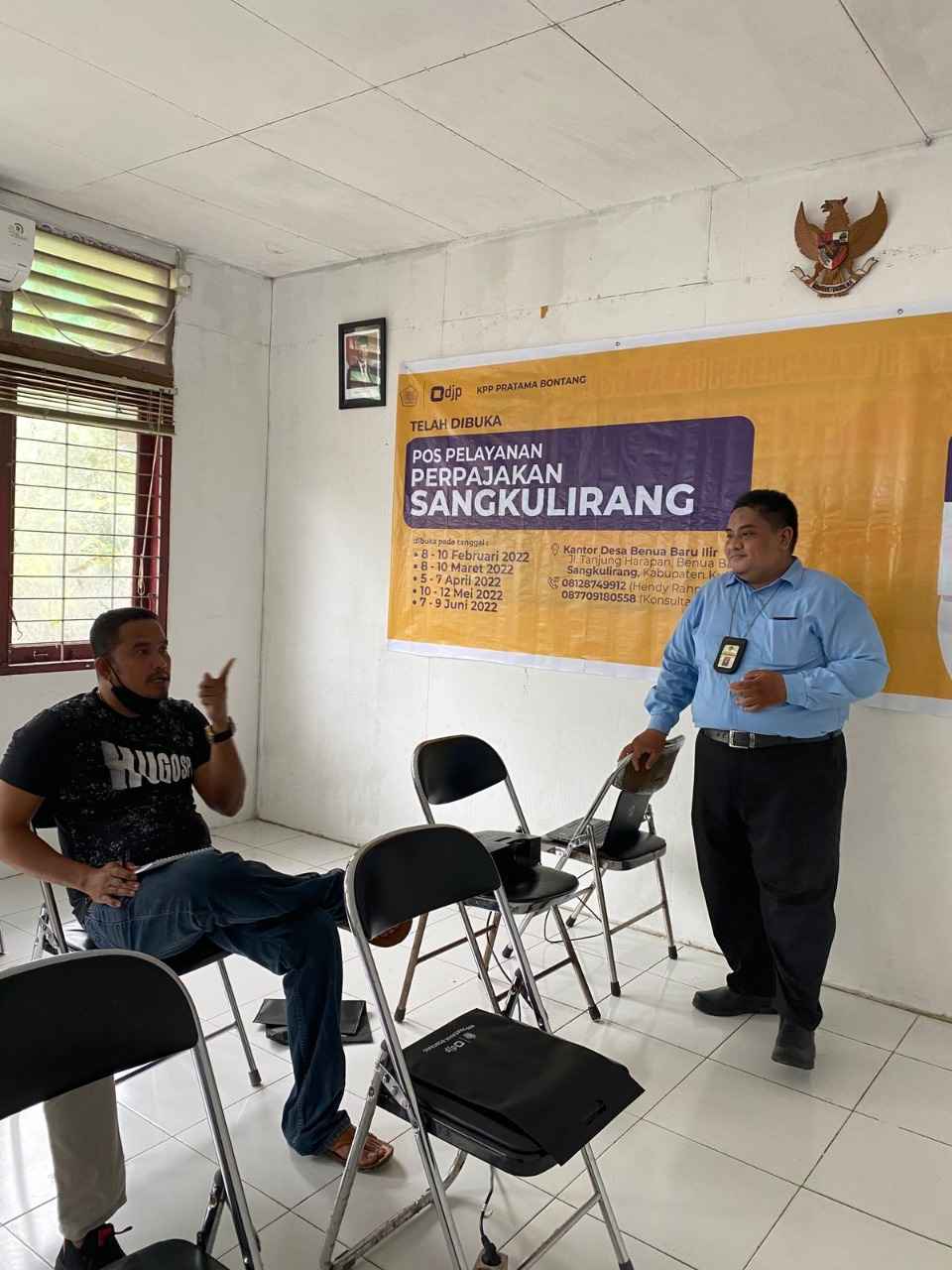 Kantor Pelayanan Pajak (KPP) Pratama Bontang bekerja sama dengan Kecamatan Sangkulirang telah melaksanakan Sosialisasi dan Pendampingan Penyampaian SPT Tahunan Wajib Pajak Orang Pribadi Tahun 2021 kepada para pengusaha sarang burung walet di wilayah Sansaka Kabupaten Kutai Timur (Rabu, 9/2). Kegiatan tersebut diselenggarakan di Kantor Kecamatan Sangkulirang yang berlokasi di Jl Wana Bhakti Banua Baru Kecamatan Sangkulirang Kabupaten Kutai Timur.