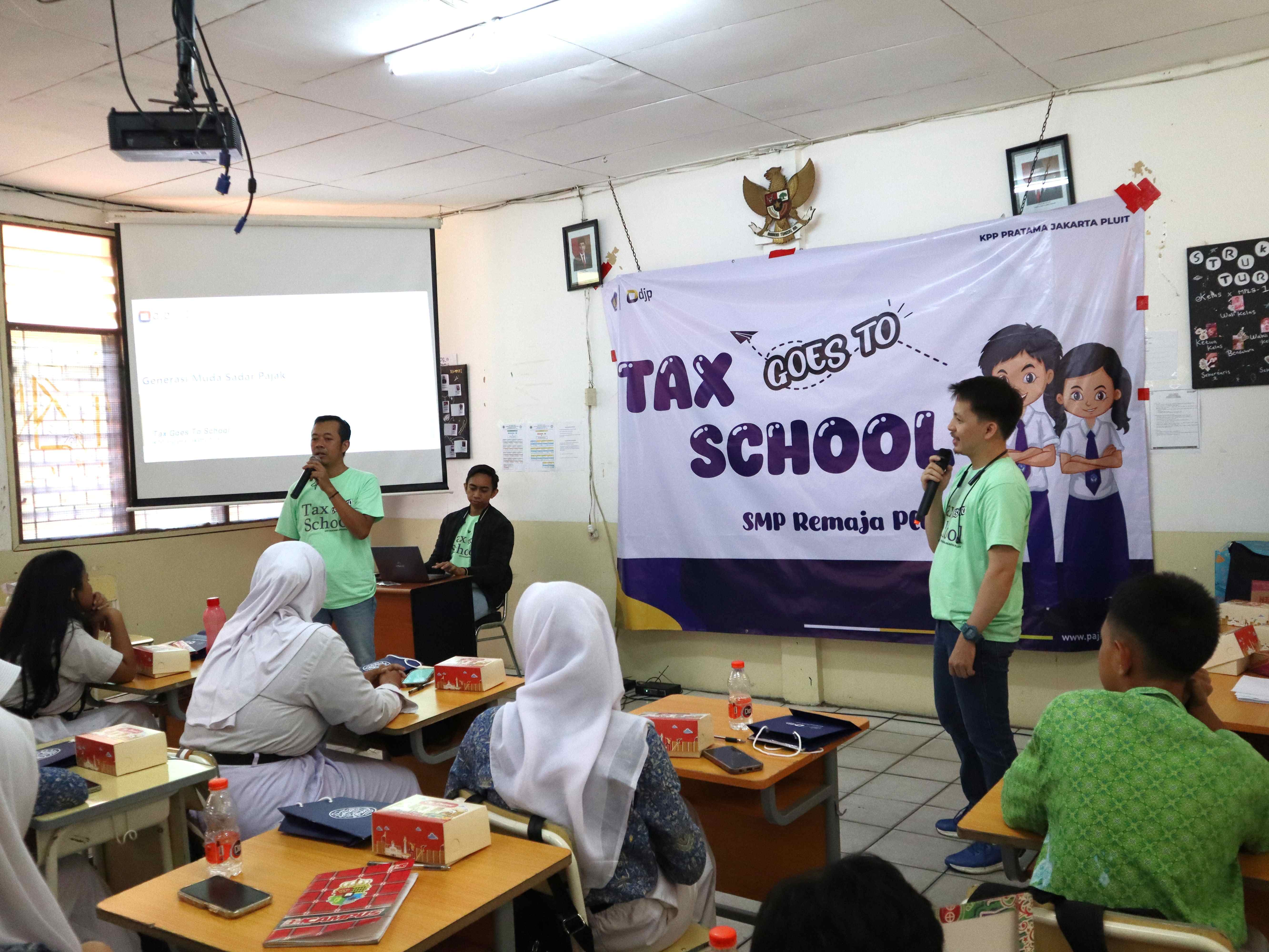 Kantor Pelayanan Pajak (KPP) Pratama Jakarta Pluit telah mengadakan kegiatan Tax Goes To School (TGTS) bertempat di Sekolah menengah Pertama (SMP) Remaja Pluit, Jl. Pluit Selatan I No. 36 RT.6/RW.14, Jakarta Utara (Kamis, 10/10). Sebanyak 52 siswa kelas VIII dan kelas IX mengikuti kegiatan ini, didampingi empat guru termasuk Kepala SMP Remaja Pluit. Tax goes to school rutin diadakan setiap tahunnya untuk mengenalkan kepada siswa sejak dini mengenai apa itu pajak dan apa manfaat bagi masyarakat.