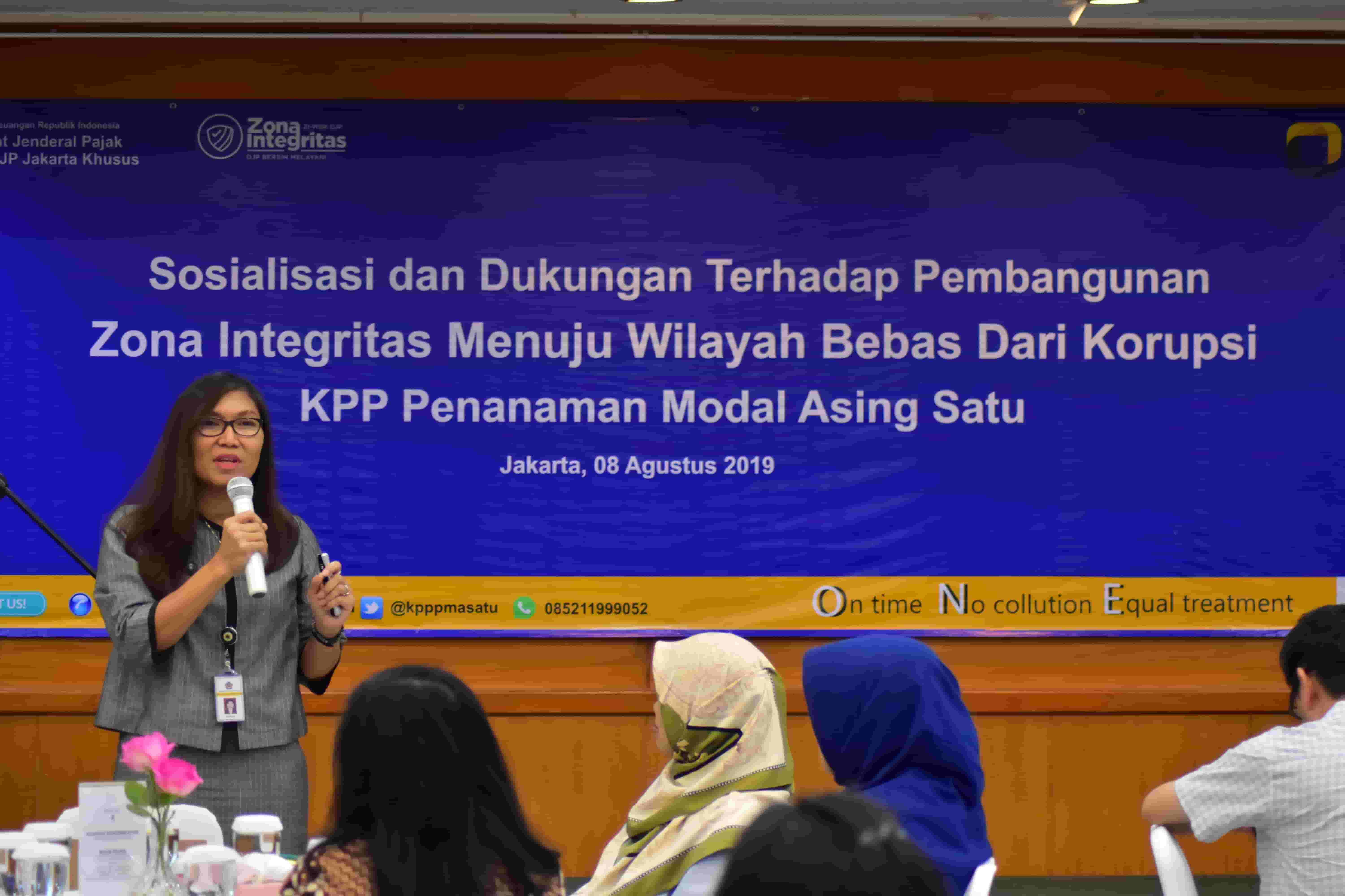 “Pembangunan zona integritas sebagai pemantik terwujudnya reformasi birokrasi, transformasi kelembagaan, hingga reformasi perpajakan yang sedang digelorakan,” pesan Rosmauli, Kepala Kantor Pelayanan Pajak (KPP) Penanaman Modal Asing (PMA) Satu, dalam video profil yang ditayangkan dalam Sosialisasi dan Dukungan terhadap Pembangunan Zona Integritas Menuju Wilayah Bebas dari Korupsi (Kamis, 8/8).