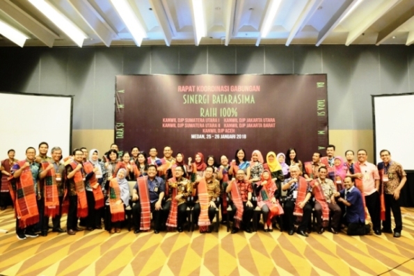 Kelima Kanwil DJP tersebut antara lain Kantor Wilayah DJP Aceh, Kantor Wilayah DJP Sumatera Utara I, Kantor Wilayah DJP Sumatera Utara II, Kantor Wilayah DJP Jakarta Utara dan Kantor Wilayah DJP Jakarta Barat. Kegiatan rapat yang berlangsung selama dua hari hingga 26 Januari 2018 tersebut mengusung tema Sinergi Batarasima Raih 100%.