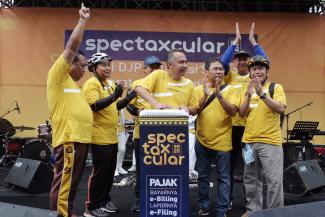 Booth layanan pojok pajak sendiri menjadi salah satu booth yang cukup ramai disambangi para pengunjung acara Spectaxcular kali ini. Sembari berolahraga dan menikmati acara hiburan, para pengunjung juga dapat memperoleh asistensi pelaporan SPT Tahunan dengan menggunakan e-Filing. Dengan layanan e-Filing, pelaporan SPT Tahunan pun dapat dilakukan dimana saja dan kapan saja secara daring.