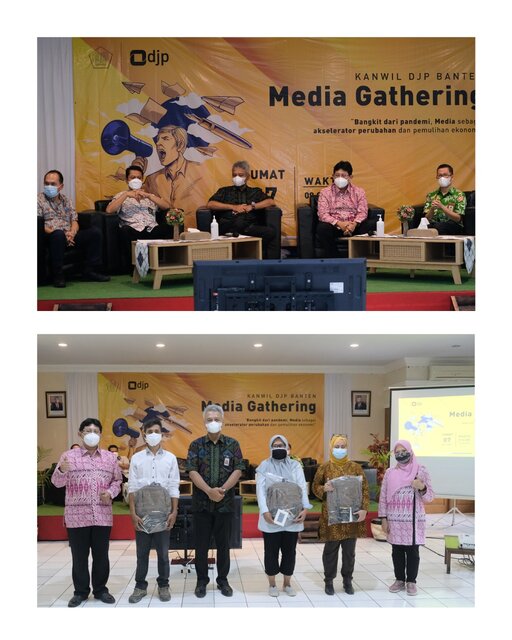 Kantor Wilayah Direktorat Jenderal Pajak (Kanwil DJP) Banten mengadakan riung media (media gathering) secara tatap muka dengan protokol kesehatan yang ketat bersama 30 perwakilan media massa se-Provinsi Banten di Aula Kanwil DJP Banten, Serang (Jumat, 7/5).