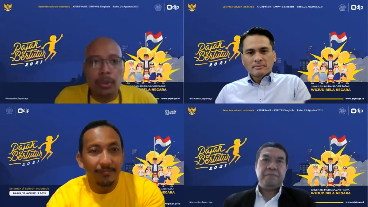 Kantor Pelayanan, Penyuluhan, dan Konsultasi Perpajakan (KP2KP) Malili menyelenggarakan kegiatan Pajak Bertutur tahun 2021 dengan bekerja sama dengan pihak SMP YPS Singkole Sorowako (Rabu, 25/8). Acara yang mengambil tema "Generasi Muda Sadar Pajak, Wujud Bela Negara" ini diadakan secara daring dengan menggunakan aplikasi Zoom Meeting di ruang kelas pajak KP2KP Malili, Kabupaten Luwu Timur.