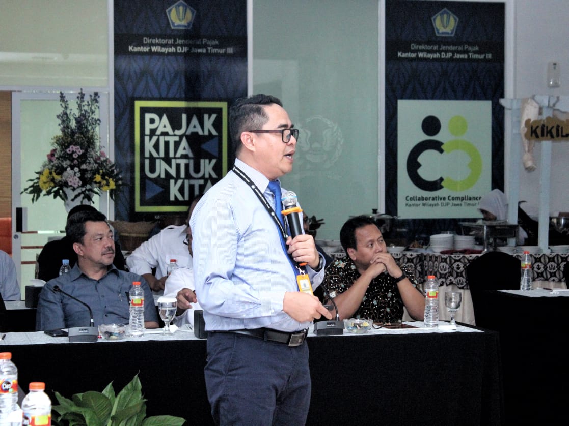 Masing-masing kepala Kanwil DJP Jawa Timur III dan Kepala Kanwil DJBC Jawa Timur II memaparkan progress report pelaksanaan Joint Program selama tahun 2018 kepada Komwas Perpajakan termasuk keberhasilan mencapai penghargaan dari Menteri Keuangan dengan kategori Best Achievement Award atas program sinergi reformasi DJP-DJBC tahun anggaran 2018.