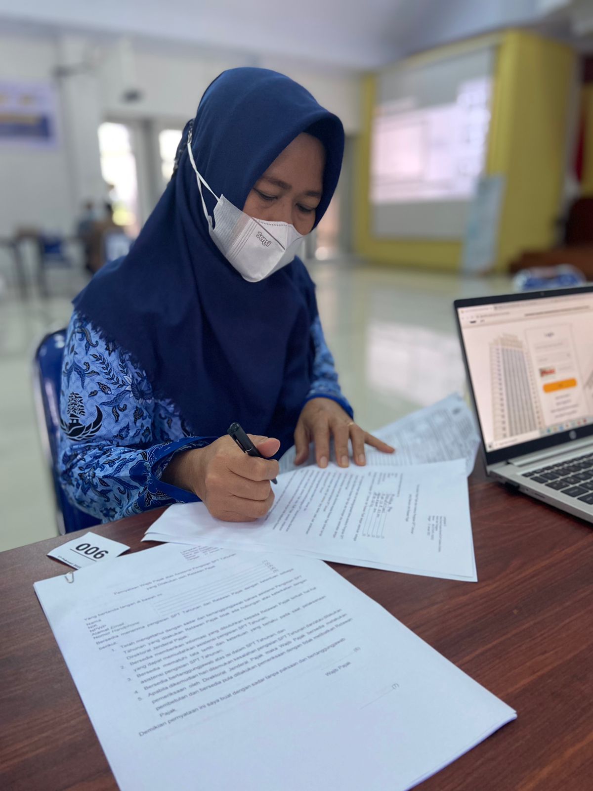 Siti Hajar, salah satu relawan pajak KPP Pratama Majene melaksanakan asistensi pelaporan SPT Tahunan. Mahasiswi jurusan akuntansi Unsulbar ini tertarik ikut menjadi salah satu relawan pajak. Siti menuturkan bahwa sebelum mengikuti relawan pajak, ia mengikuti tes wawancara yang diadakan oleh Unsulbar, setelah dinyatakan lulus menjadi peserta relawan pajak Siti mendapatkan pembekalan materi perpajakan terlebih dahulu.