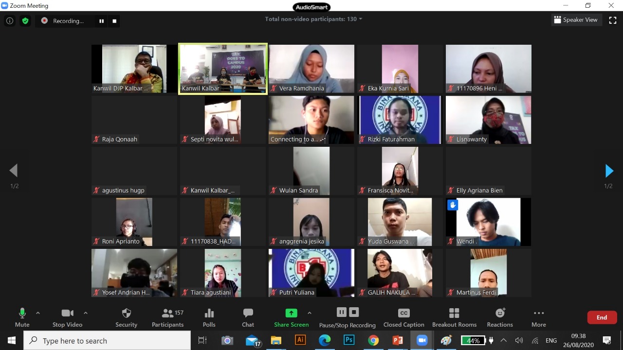 KPP Pratama Pontianak Timur mengadakan sosialisasi pajak kepada future tax payer melalui acara Tax Goes To Campus (TGTC) bersama mahasiswa Universitas Bina Sarana Informatika (UBSI) (Rabu, 26/8). Acara TGTC kali ini mengusung tema “Kamek Bangga Sadar Pajak”. Kegiatan yang dilakukan secara daring melalui Zoom Cloud Meeting dari ruang rapat KPP Pratama Pontianak Timur ini dihadiri oleh rektor UBSI, jajaran pimpinan kampus UBSI Pontianak, dan total 246 mahasiswa semester pertama UBSI.