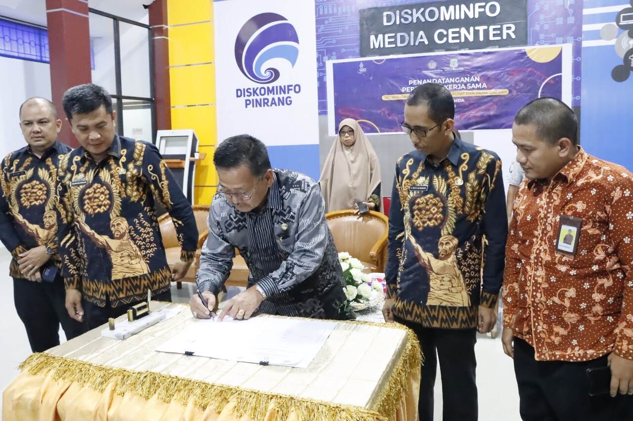 Kepala Kantor Pelayanan, Penyuluhan, dan Konsultasi Perpajakan (KP2KP) Pinrang turut hadir pada acara seremoni penandatanganan Perjanjian Kerja Sama (PKS) antara tiga pihak (Kamis, 15/9). Seremoni yang digelar secara hybrid tersebut dilaksanakan di ruang Media Center milik Dinas Komunikasi, Informatika, dan Persandian (Diskominfo) Pinrang, Kabupaten Pinrang.