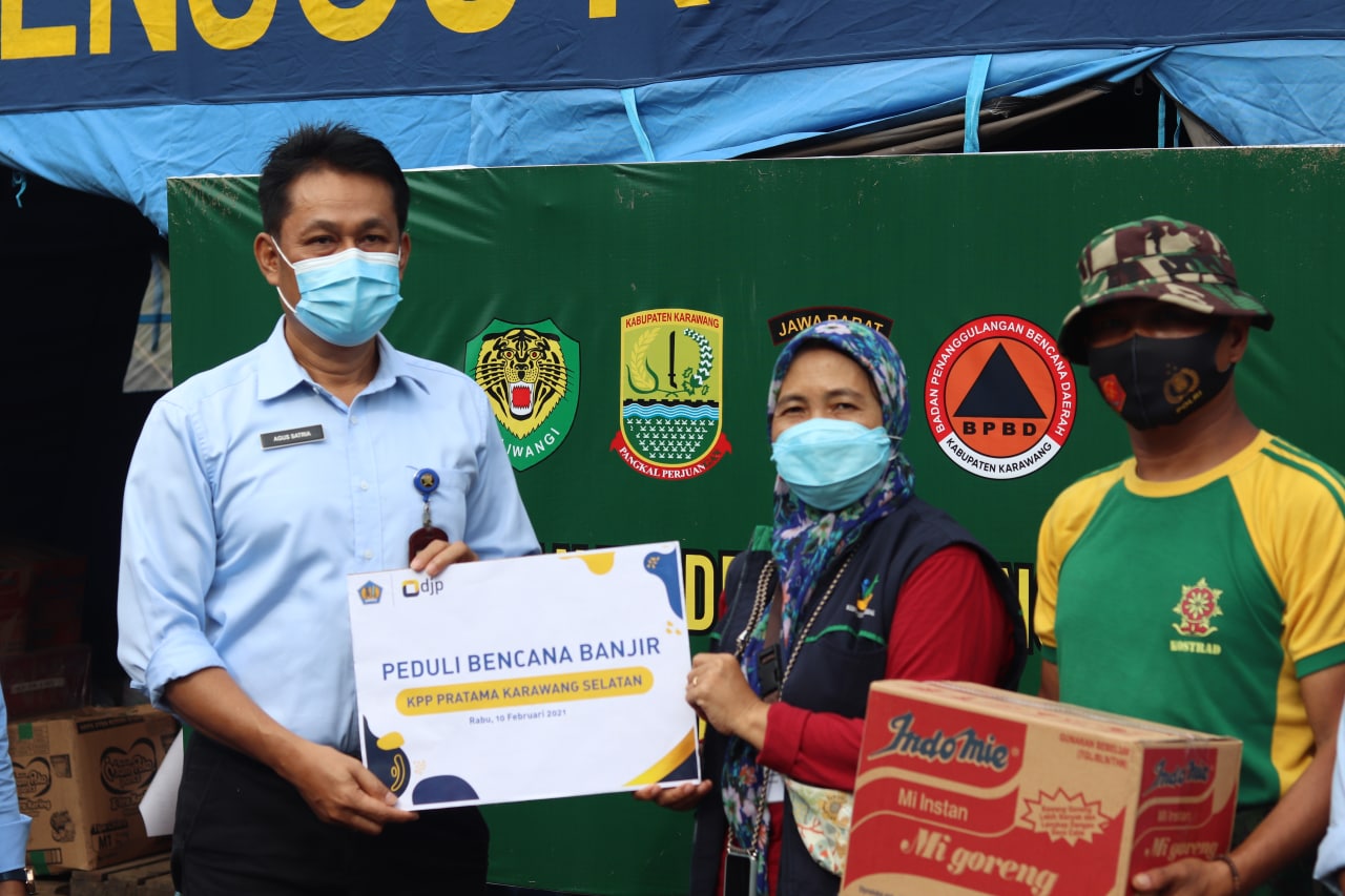 Bantuan yang dihimpun secara sukarela dari pegawai KPP Pratama Karawang Selatan ini diberikan ke dua posko, yaitu posko dapur umum dan posko di Desa Sukamakmur, serta kepada dua orang di lingkungan KPP Pratama Karawang Selatan yang terdampak banjir.