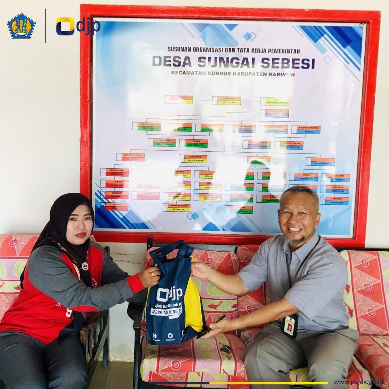 Kantor Pelayanan, Penyuluhan dan Konsultasi Perpajakan (KP2KP) Tanjung Batu melakukan koordinasi dengan Pemerintah Desa Sungai Sebesi, Kecamatan Kundur, Kabupaten Karimun, Kepulauan Riau terkait kegiatan Pemutakhiran Data Mandiri (PDM) dalam rangka implementasi NIK (Nomor Induk Kependudukan) sebagai NPWP (Nomor Pokok Wajib Pajak) (Kamis,12/1).