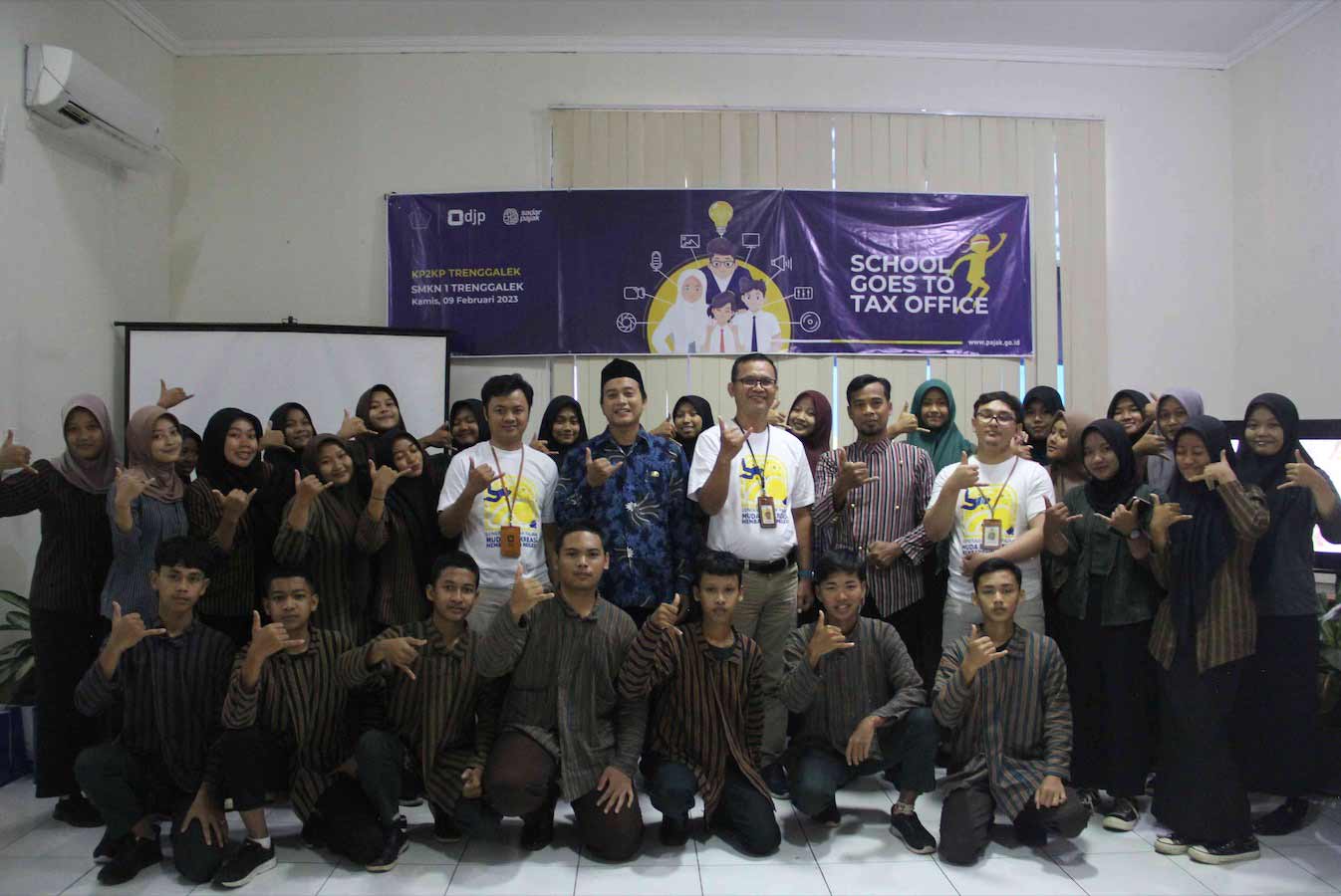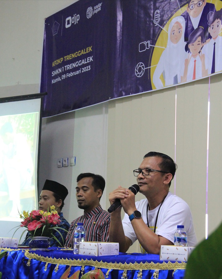 Kantor Penyuluhan, Pelayanan dan Konsultasi Perpajakan (KP2KP) Trenggalek bersama Sekolah Menengah Kejuruan (SMKN) 1 Trenggalek mengadakan acara School Goes To Tax Office yang dilaksanakan di Aula KP2KP Trenggalek, Kabupaten Trenggalek. Dengan mengusung tema Generasi Muda Sadar Pajak, Berkreasi Membangun Negeri, acara ini diikuti oleh 28 siswa perwakilan dari SMKN 1 Trenggalek (Kamis, 9/2).