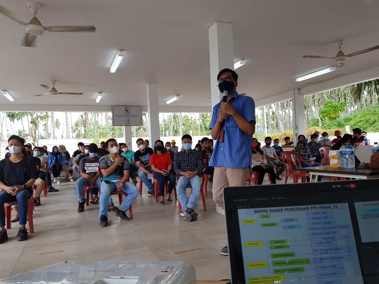 Narasumber dalam kegiatan ini adalah Asisten Penyuluh Pajak KPP Pratama Kotamobagu Nixon Josua. Para karyawan selama kegiatan diberikan pemahaman bagaimana mekanisme pemotongan pajak PPh Pasal 21 atas gaji maupun upah yang diterima oleh karyawan, baik secara bulanan, mingguan bahkan harian. Dalam paparannya, Nixon menyampaikan, PT. Sasa Inti sebagai pemberi kerja diberi kewajiban oleh undang-undang untuk melakukan pemotongan pajak Pajak Penghasilan (PPh) Pasal 21 bagi karyawan jika sudah melebihi batas dari yang seharusnya dikenakan pajak.
