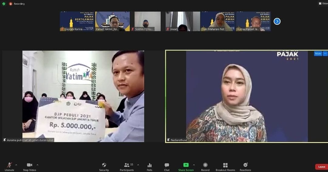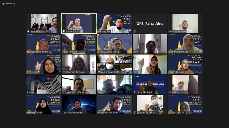 Kantor Wilayah Direktorat Jenderal Pajak (Kanwil DJP) Jakarta Timur menyelenggarakan kegiatan DJP Bertilawah dan DJP Peduli secara daring melalui aplikasi Zoom Cloud Meeting (Jumat,9/7). Kepala Bagian Umum Kantor Wilayah DJP Jakarta Timur Sandra Buana mengungkapkan, kegiatan ini merupakan rangkaian Peringatan Hari Pajak Tahun 2021.