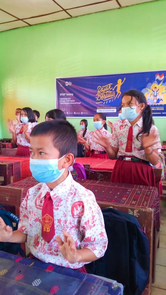 Kantor Pelayanan, Penyuluhan, dan Konsultasi Perpajakan (KP2KP) Tarutung melangsungkan kegiatan Pajak Bertutur 2021 di SD Negeri 173307 Sipultak Pagaran, Kabupaten Tapanuli Utara, Sumatera Utara (Rabu, 25/8). Bertempat di ruang kelas SD Negeri 173307 Sipultak Pagaran, kegiatan ini berlangsung dari pukul 09.00 sampai dengan 11.00 WIB. Kegiatan diikuti oleh 35 siswa.