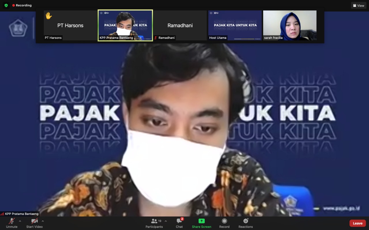 "Kondisi yang berubah-ubah saat ini membuat pemerintah perlu beradaptasi dengan mengeluarkan peraturan perubahan, salah satunya tentang peraturan perpajakan," ucap Sarah. Selanjutnya Yogi menambahkan dengan mengimbau wajib pajak untuk tetap melaksanakan administrasi perpajakan sesuai ketentuan. Rangkaian acara ini diakhiri dengan sesi foto bersama via daring.