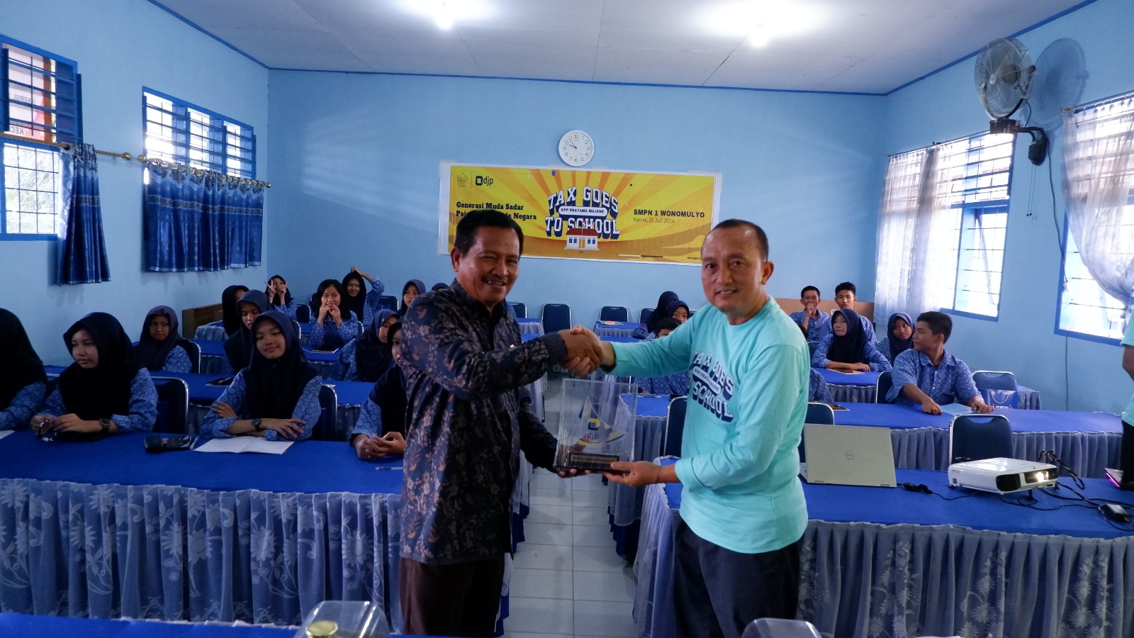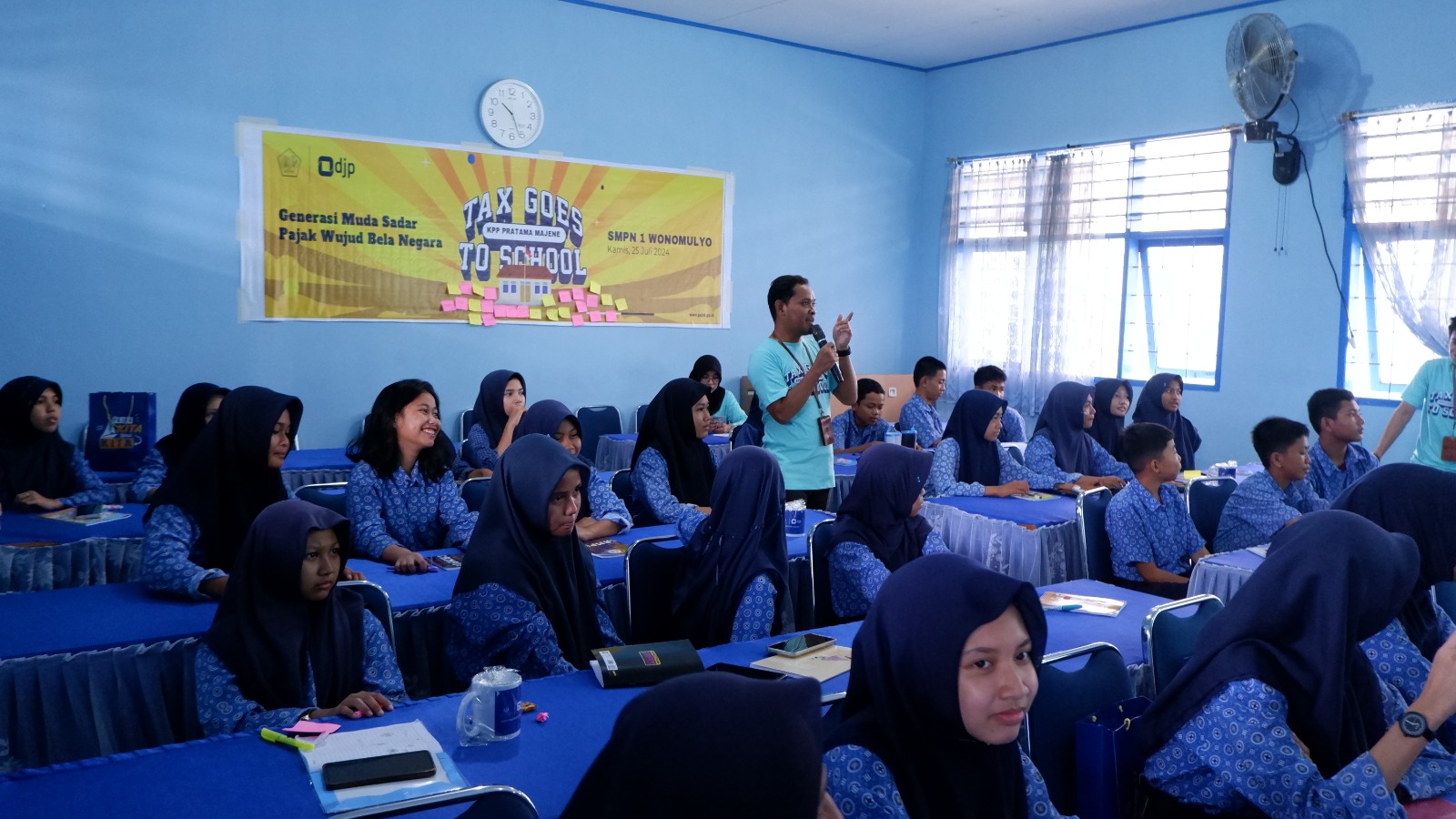 Kantor Pelayanan Pajak (KPP) Pratama Majene sukses menyelenggarakan kegiatan Tax Goes To School (TGTS) di SMP Negeri 1 Wonomulyo, Kabupaten Majene (Kamis, 25/7). Kegiatan ini diikuti oleh 30 orang siswa-siswi kelas VIII dan IX yang tergabung dalam organisasi OSIS. Kegiatan ini merupakan salah satu wujud nyata Tim Penyuluh Pajak dan Pelaksana Kantor KPP Pratama Majene dalam mewujudkan generasi yang sadar akan pentingnya pajak untuk pembangunan negara.