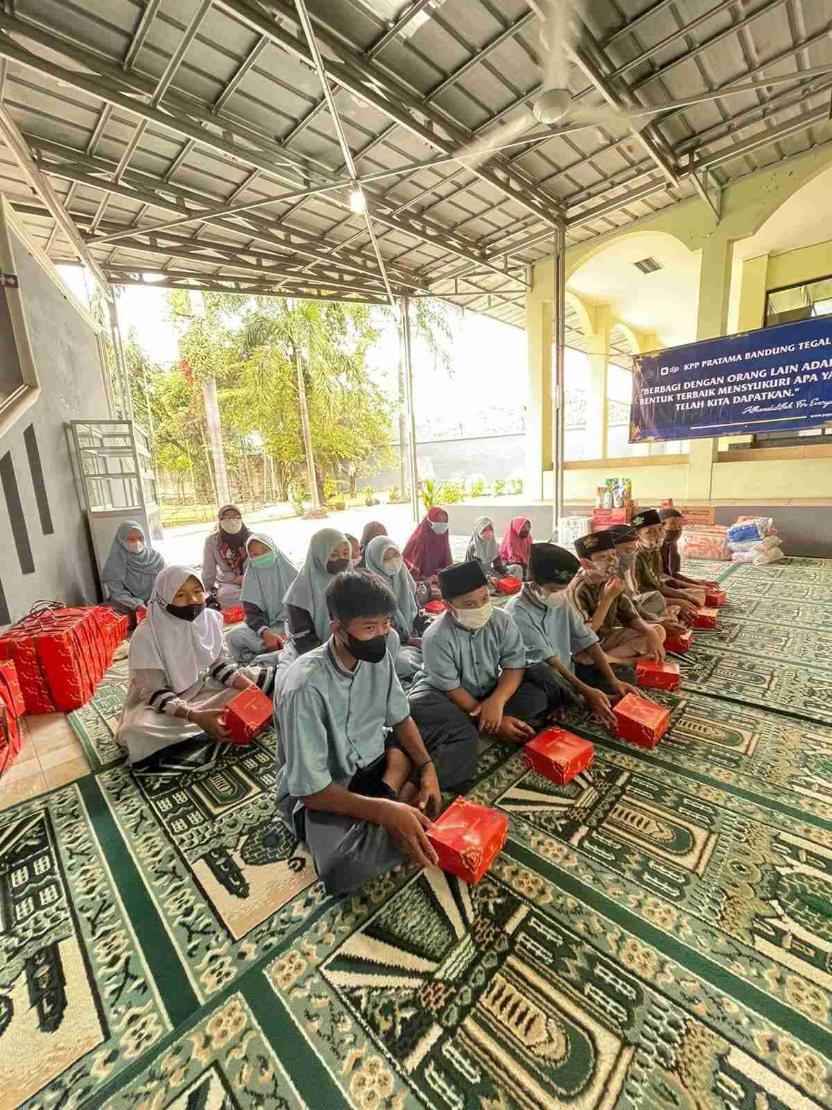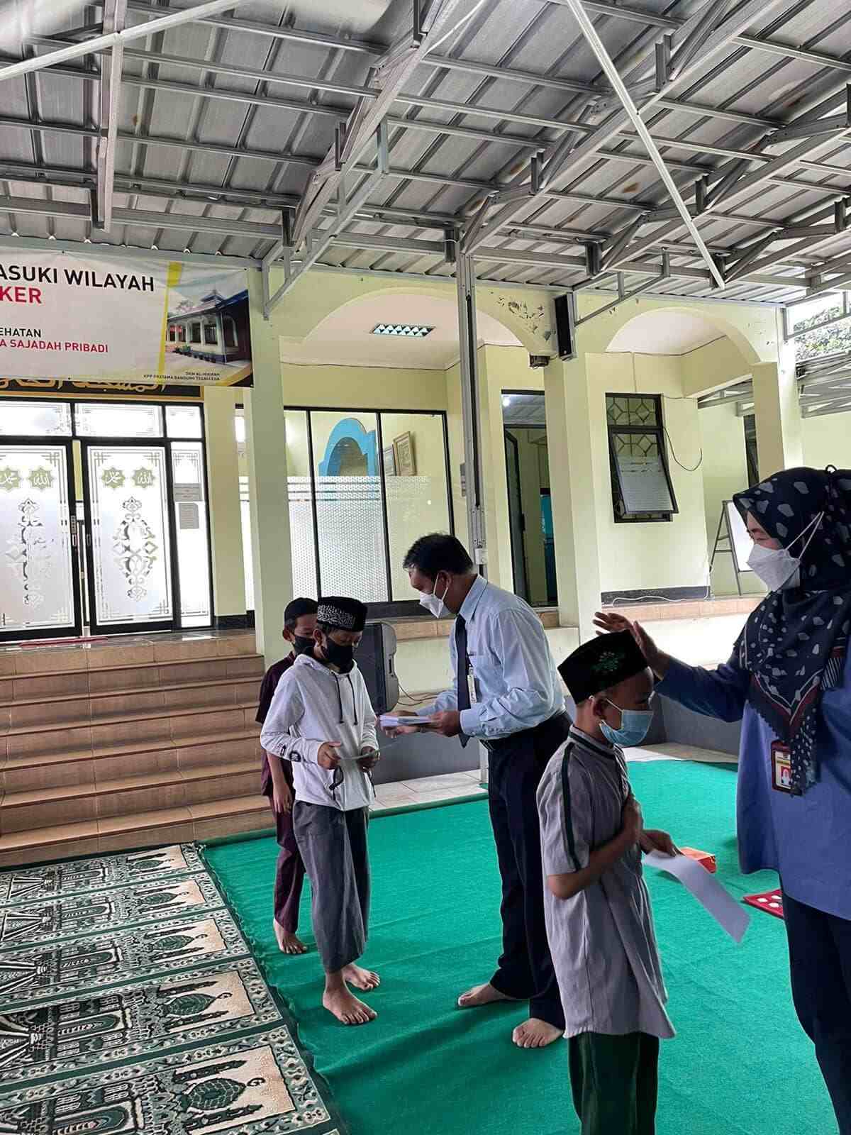 Dewan Kemakmuran Masjid (DKM) Al Hikmah KPP Pratama Bandung Tegallega mengadakan bakti sosial pemberian santunan kepada Yayasan Tarbiyatul Akhlaq 99 dan Pondok Yatim Abu yang beralamat di Babakan Ciparay Kota Bandung, (Rabu, 24/11). Kegiatan yang merupakan rangkaian peringatan Hari Oeang Republik Indonesia (HORI) ke-75 ini dilaksanakan di selasar Masjid Al Hikmah KPP Pratama Bandung Tegallega, Jalan Soekarno Hatta No 216, Kota Bandung.