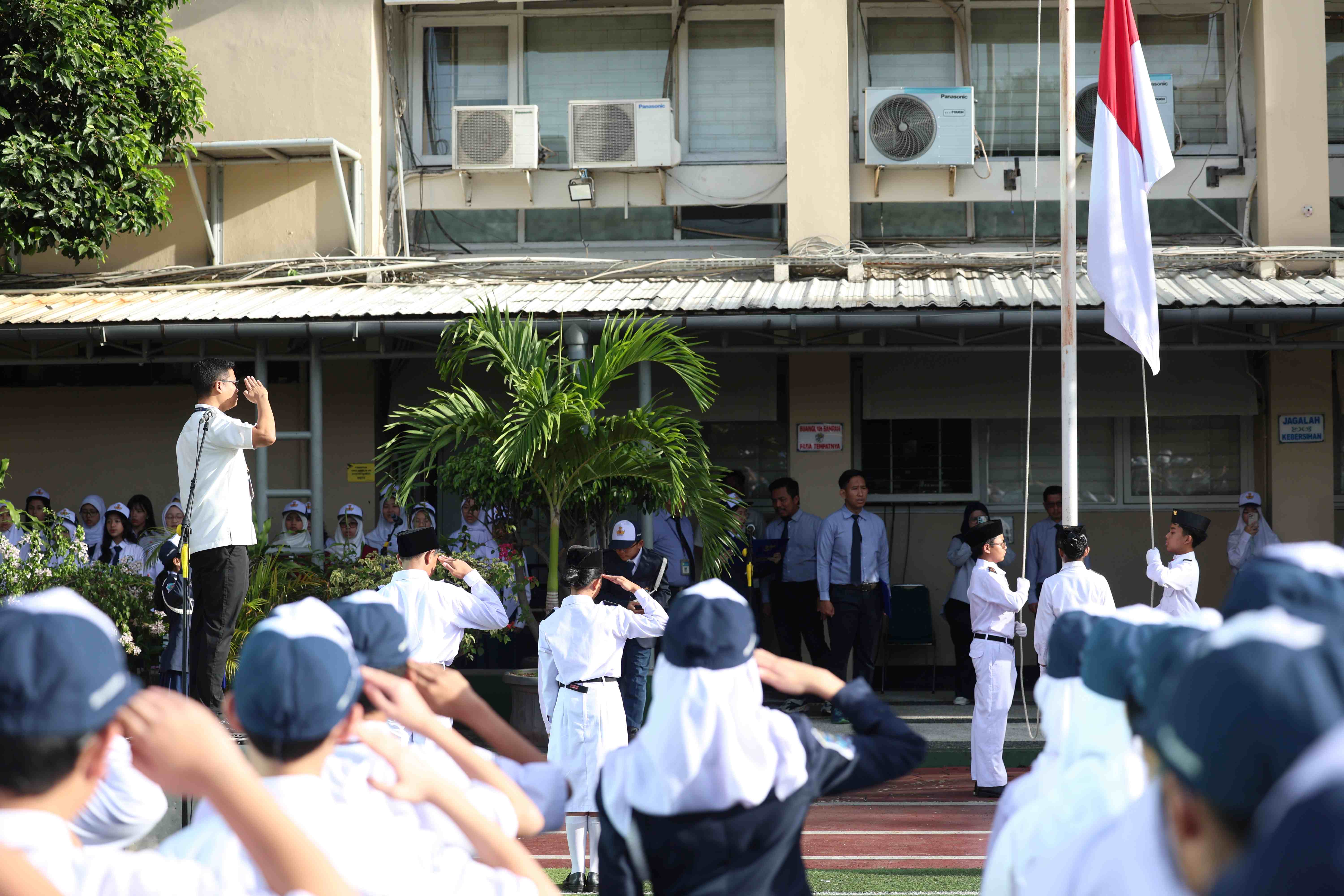 "Hari ini kita belajar tentang makna gotong royong dalam membangun negara," ungkap Bimo dalam amanatnya sebagai pembina upacara.