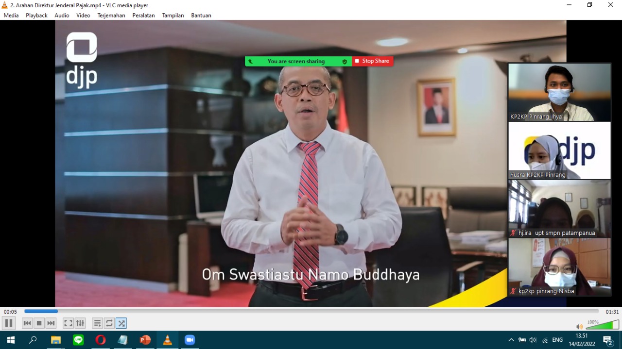 Kantor Pelayanan, Penyuluhan, dan Konsultasi Perpajakan (KP2KP) Pinrang mengadakan kegiatan penyuluhan tata cara pelaporan Surat Pemberitahuan (SPT) Tahunan melalui e-filing kepada tenaga pengajar SD dan SMP se-Kabupaten Pinrang. Sosialisasi dilaksanakan secara daring melalui aplikasi zoom meetings di ruang kelas pajak KP2KP Pinrang, Kabupaten Pinrag (Jumat, 18/2).
