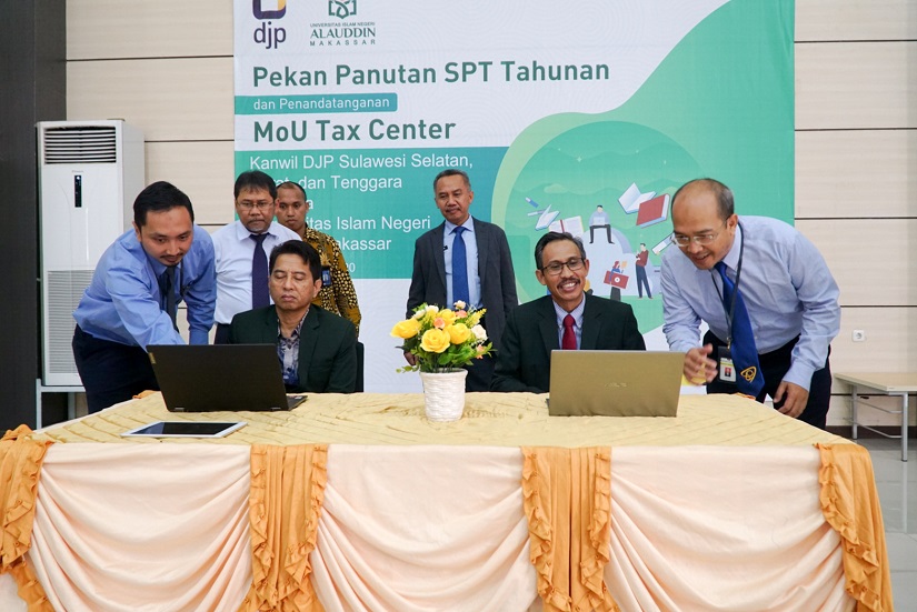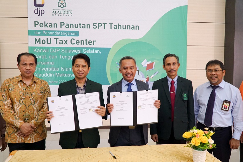 Kepala Kanwil DJP Sulselbartra Wansepta Nirwanda hadir langsung dalam acara ini untuk menyampaikan sambutan. Acara lalu berlanjut dengan sesi penandatanganan MoU Tax Center antara Kanwil DJP Sulselbartra bersama UIN Alauddin Makassar. Kesepakatan ini pun menjadi penanda dimulainya fungsi Tax Center UIN Alauddin Makassar untuk menjadi pusat pengkajian, pelatihan dan sosialisasi perpajakan di lingkungan perguruan tinggi dan juga masyarakat umum.