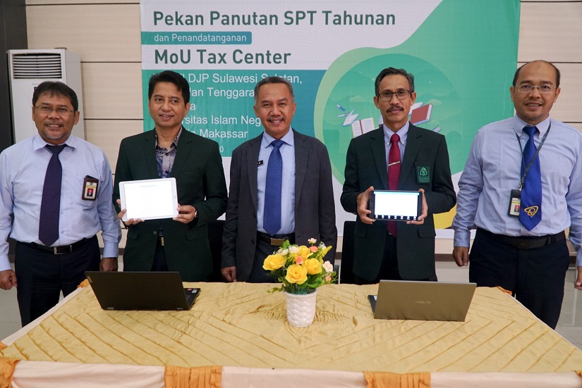 Hari ini Kanwil DJP Sulawesi Selatan, Barat, dan Tenggara (Sulselbartra) mengadakan acara Pekan Panutan SPT Tahunan dan Penandatangan MoU Tax Center bersama Universitas Islam Negeri (UIN) Alauddin Makassar (Rabu, 4/3). Acara yang diadakan di ruang aula Gedung Fakultas Ekonomi dan Bisnis Islam (FEBI) ini dihadiri oleh perwakilan mahasiswa dan staf dose dari FEBI UIN Alauddin Makassar.