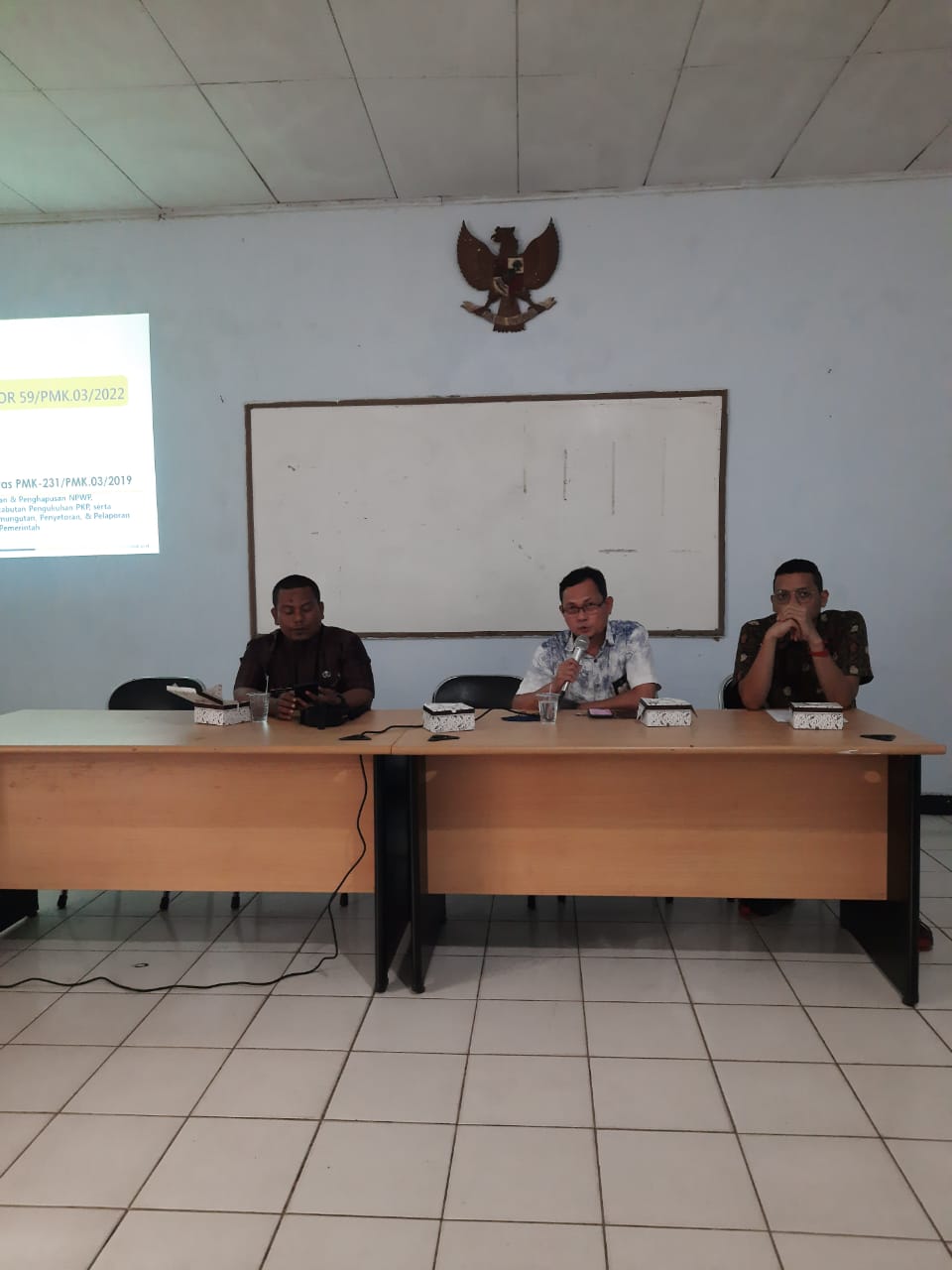 Tim Penyuluh Pajak Kantor Pelayanan Pajak (KPP) Pratama Pandeglang menyelenggarakan sosialisasi PMK-59 Tahun 2022 sekaligus bimbingan teknis elektronik bukti potong (e-Bupot) kepada bendahara desa di Kecamatan Mandalawangi Kabupaten Pandeglang bertempat di aula Kecamatan Mandalawangi, Kabupaten Pandeglang (Jumat, 29/7).