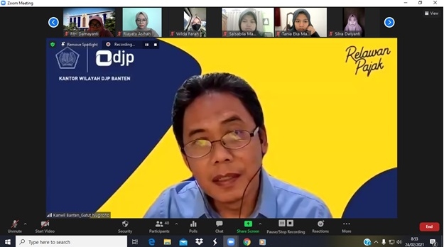 Kantor Wilayah Direktorat Jenderal Pajak (Kanwil DJP) Banten mengadakan pelatihan tata cara pelaporan SPT Tahunan kepada 40 mahasiswa calon relawan pajak dari UIN Syarih Hidayatullah Jakarta secara daring (Rabu, 24/2).